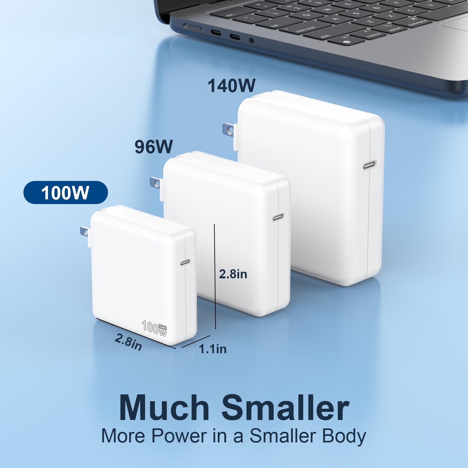 【100W GaN-Fast Charging】: Experience lightning-fast charging with the 100W GaN Latop Adapter – delivering 40% faster charging speed than 70W models.Fully rejuvenate your 14-inch MacBook Pro in just 90 minutes