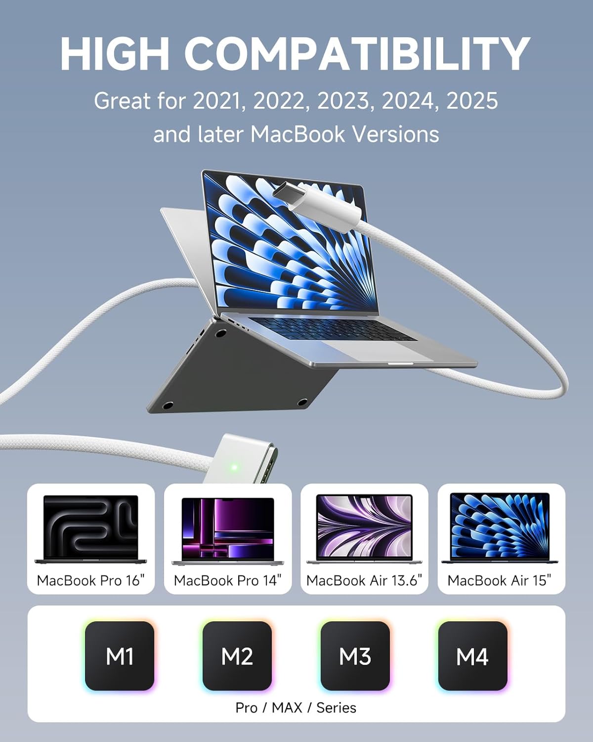 Widely Compatible with: MacBook Pro 16 inch (M4, 2024) (M3, 2023) (M2, 2022) (M1, 2021); MacBook Pro 14 inch (M4, 2024) (M3, 2023) (M2, 2022) (M1, 2021); MacBook Air 13.6 inch (M4, 2025) (M3, 2024) (M2, 2022); MacBook Air 15 inch (M4 2025) (M3 2024) (M2 2023);