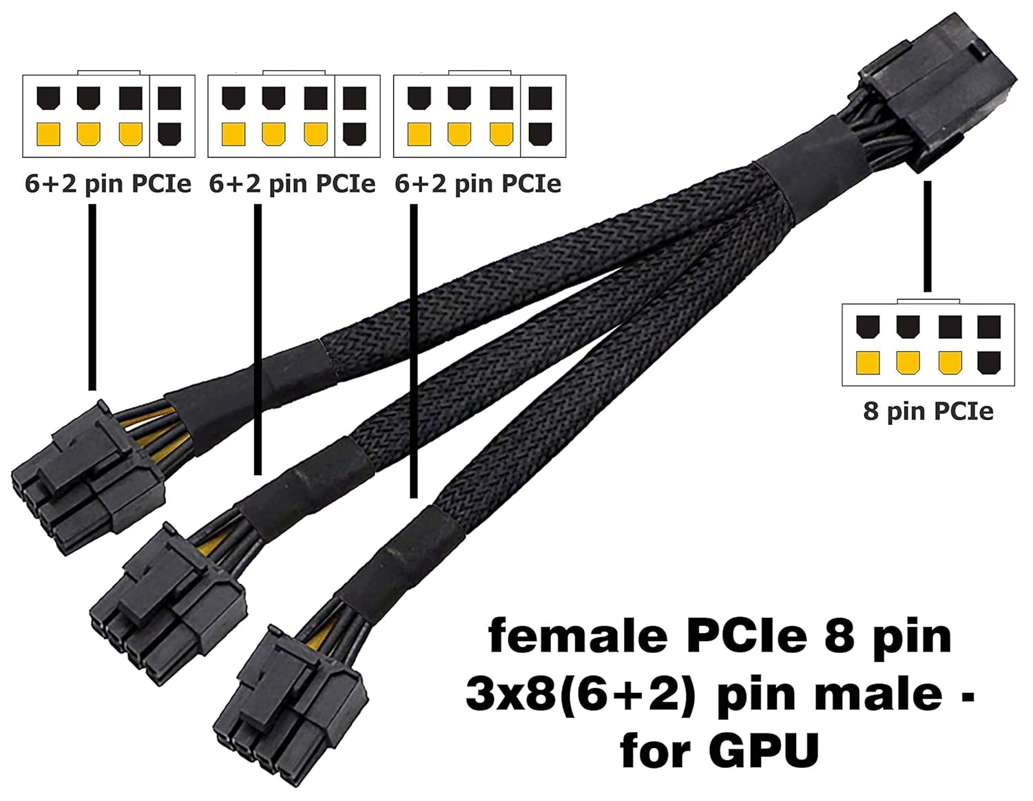 16 AWG, PCI-e 8Pin PCI Express Graphics Video Card GPU VGA 8 Pin Female to 3X GPU 8(6+2) Pin Male GPU 8 pin Splitter Power Sleeved Cable 8 Pin GPU 12-inches