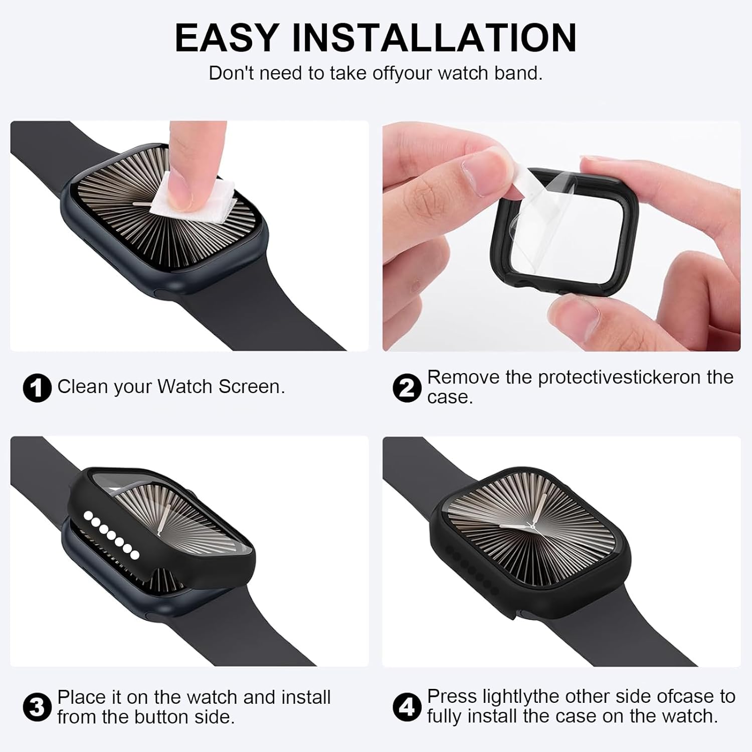 2-in-1 Protection – The lightweight PC Apple Watch case comes with tempered glass to protect the screen. All-round protection against damage to the watch during daily activities.