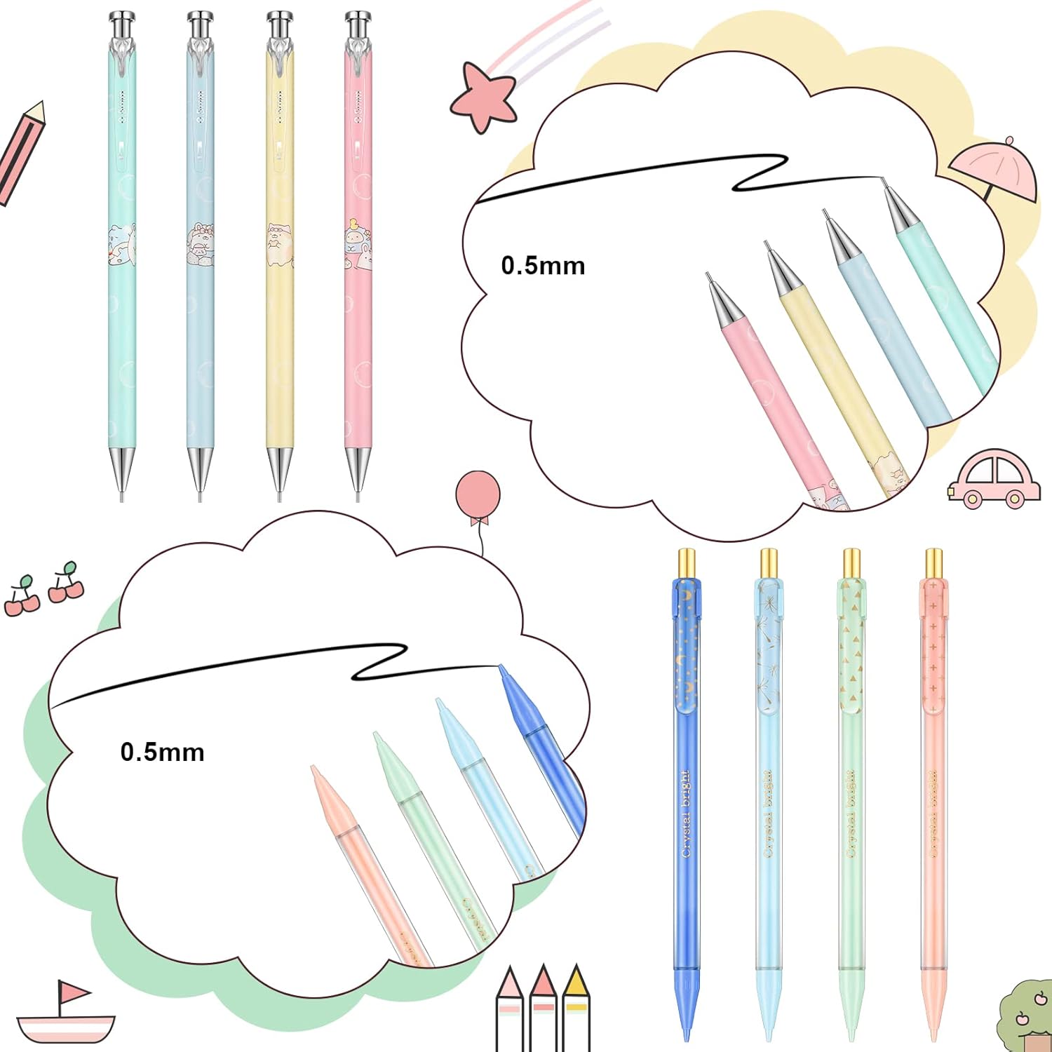 Cute Design: aesthetic mechanical pencils are printed with a variety of endearing patterns, the clear print with bright colors can add a cute touch to your stationery; They are great writing tools for kids, teens and even adults
