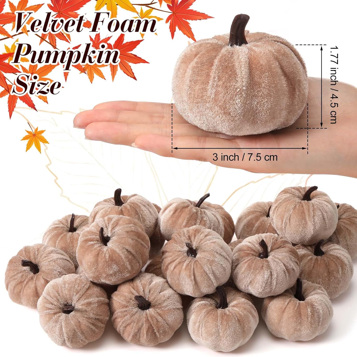 Large Quantity Velvet Pumpkins: you will receive a generous set of 30 pieces artificial velvet pumpkins in champagne color, each crafted to resemble the authentic look of real pumpkins; Ideal for both craft projects and seasonal decorations, this pack meets all your decorative needs for Fall, Thanksgiving and Halloween festival decoration