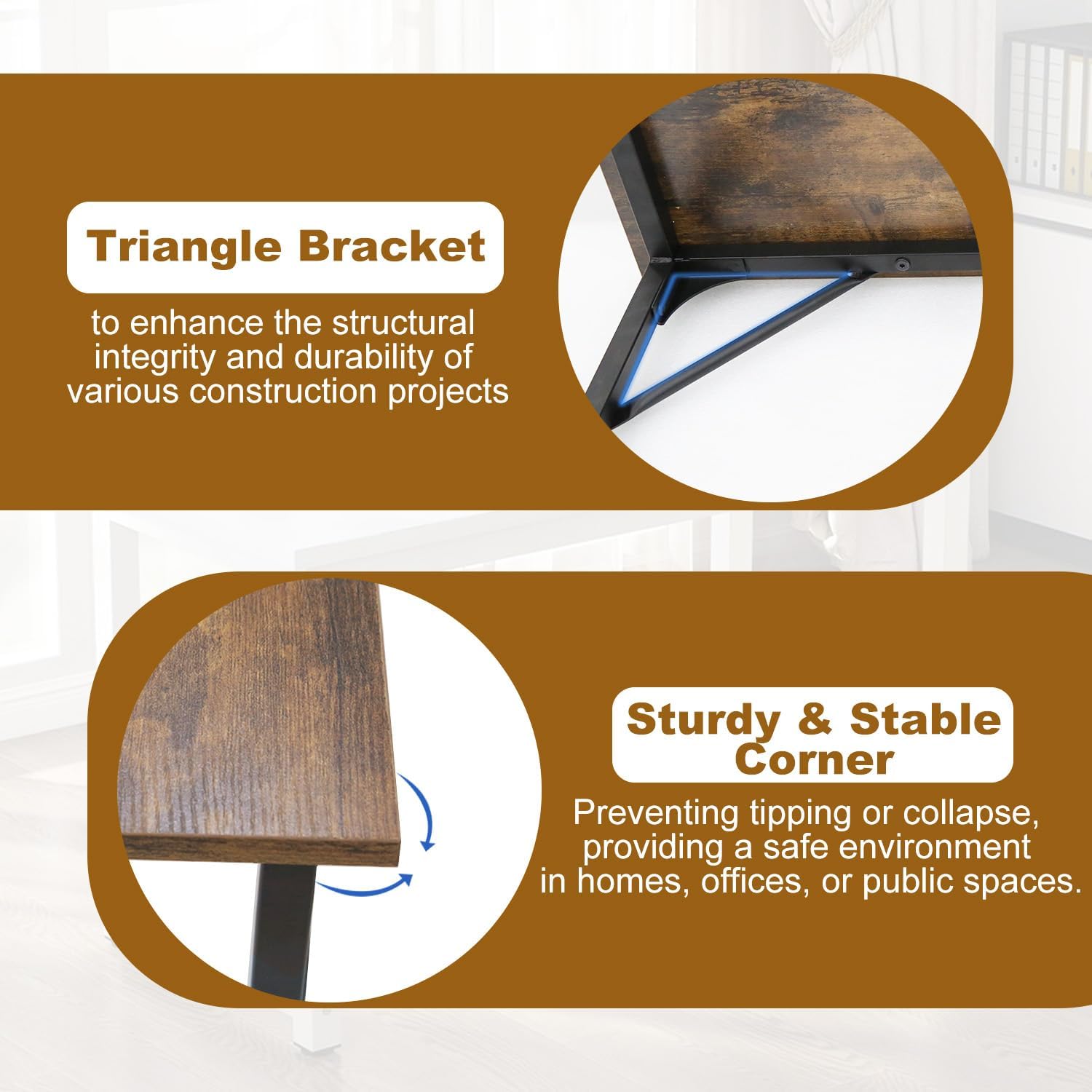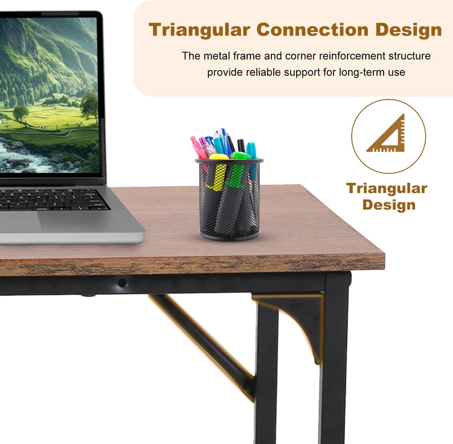 【Sturdy and Stable】This computer desk has adjustable feet, fixed steel brackets, and a triangle connection design that makes the desk more stable. The thick metal powder-coated frame and track foot structure make the desk very sturdy for long-term use.