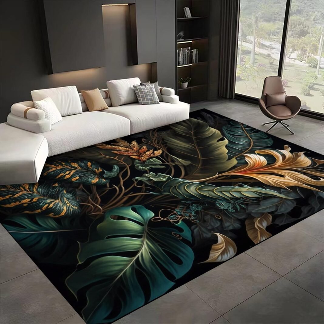 Transform your home decor with this stylish floor decor rug, whose beautiful green tropical leaves print adds natural charm to any space.