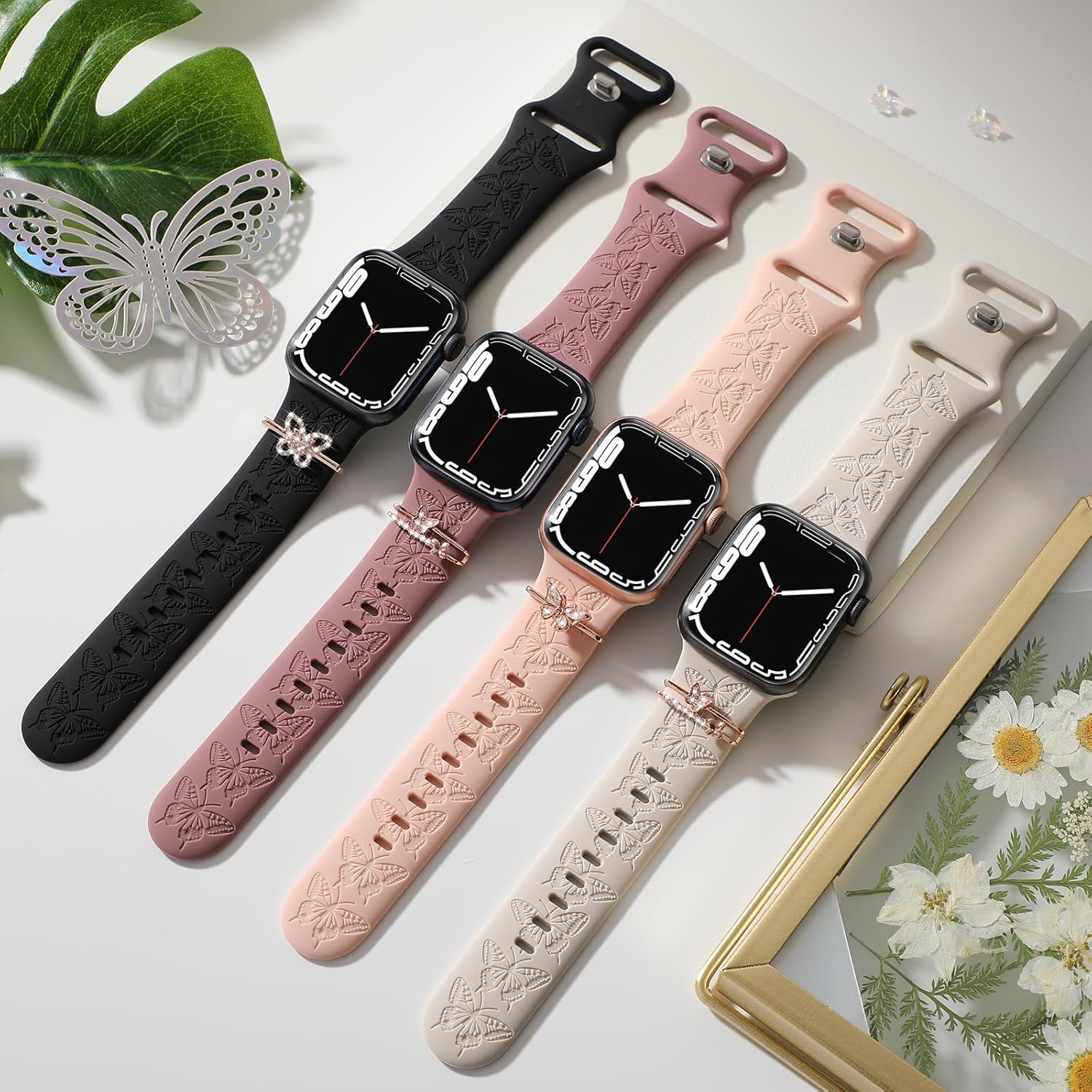 Butterfly with Charms engraved apple watch bandsBlack/Pink/Starlight/Violet Smoke apple watch band engrave apple watch bands Flamingo engraved apple watch bandsice Blue/Grey/Cactus Green/Rock Grey apple watch bands