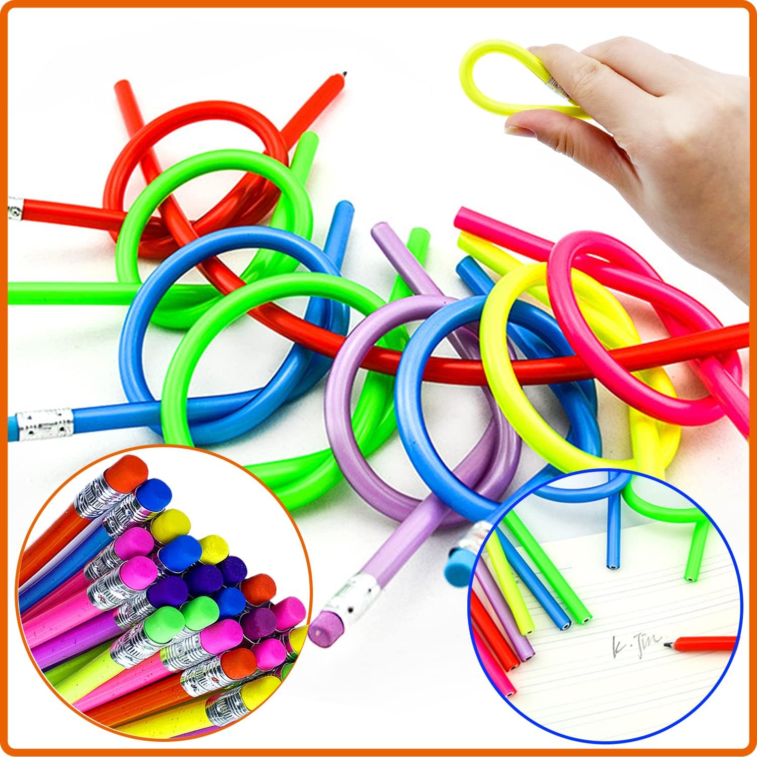 Material:All these soft bendable pencils are made of rubber so they can be bent and are very soft and comfortable to the touch.One end is designed with an eraser,which is convenient for erasing mistakes when writing