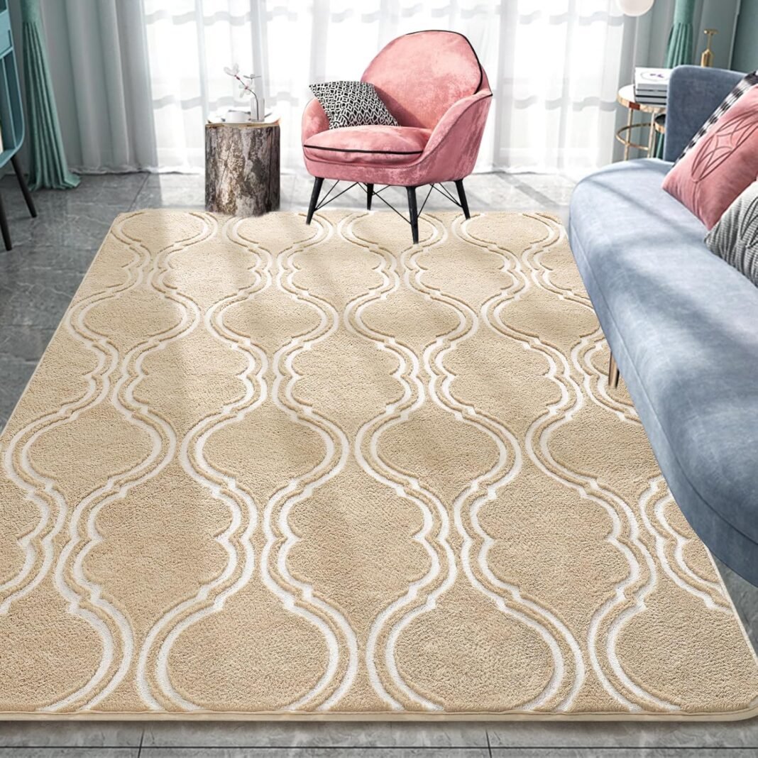 【Care Tip】Beige rug 4×6 is rolled and packed for better transit and may be slightly creased or smell when you receive them. Please don’t worry! Lay flat for 2-3 days and smooth out by hand. If the wrinkles don’t disappear, machine wash in cold water and air dry, the floor rug will be fluffy again