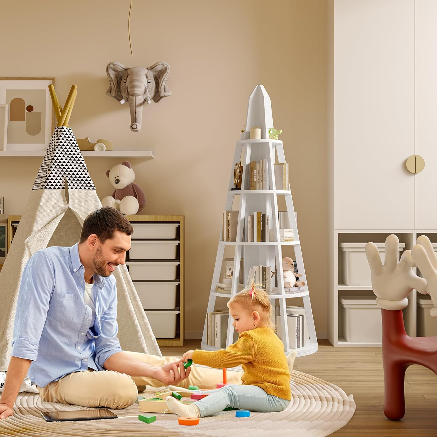 Stable Low-Center Gravity Structure: The unique tower design is not only eye-catching, but also a masterpiece of stability. The sturdy base and well-structured shelves give it a lower center of gravity, making it less likely to tip over than ordinary bookshelves. This bookcase gives you peace of mind, especially for homes with children or pets