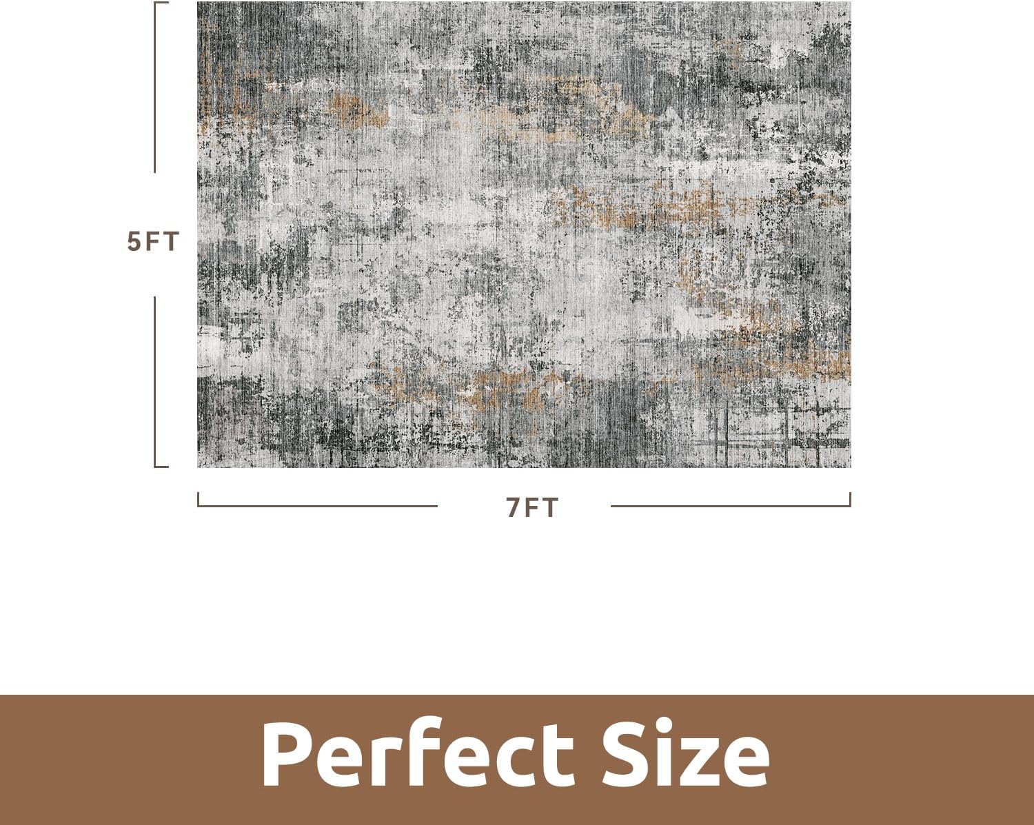 5 x 7 Area Rugs for Living Room, Machine Washable Non Slip Rug Ultra Soft Low Pile Indoor Carpet Modern Abstract Rugs for Bedroom Office Room Dining Room Beside, Grey