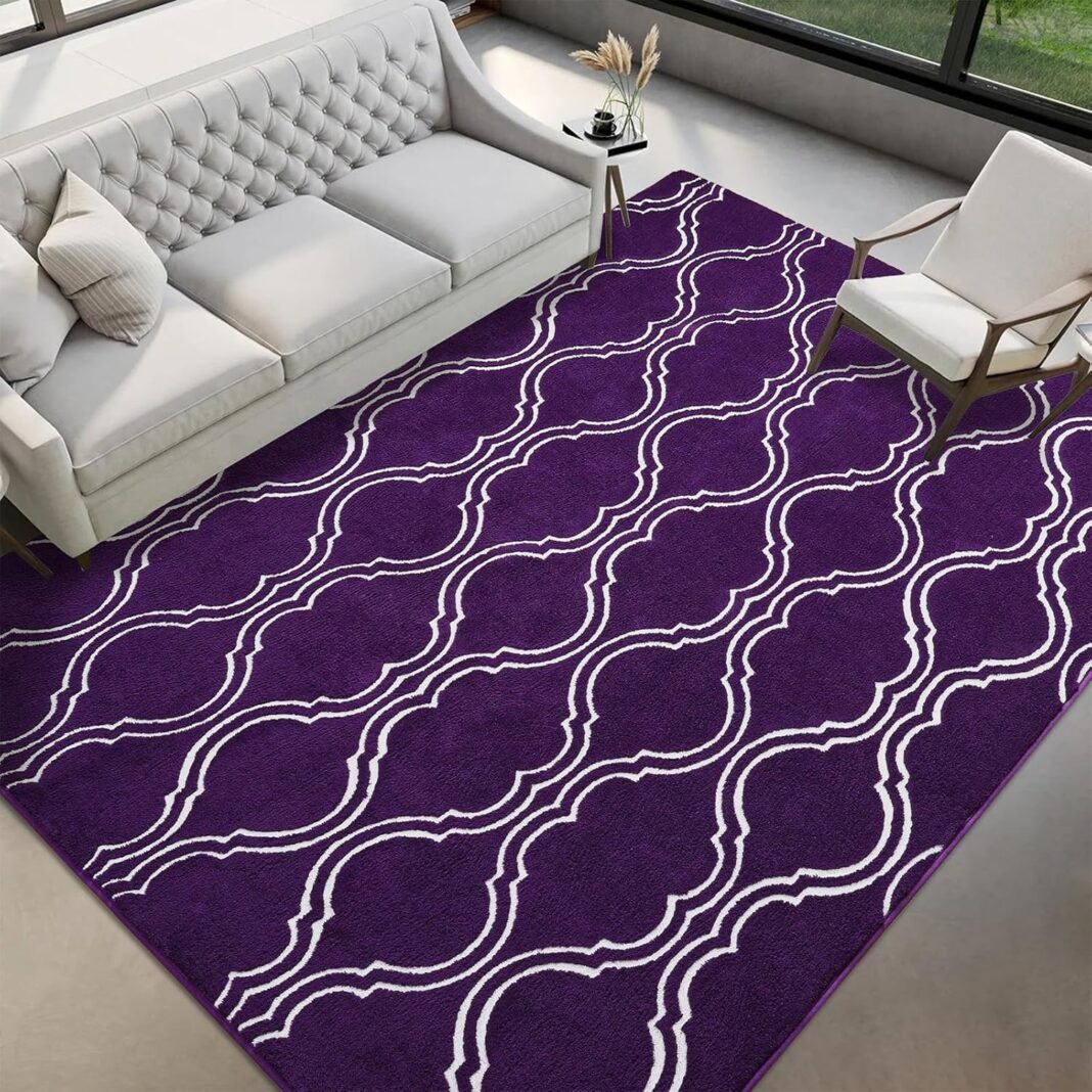 【Washable Rug】Purple 5×7 rug is easy to maintain, for daily care you can use a small handheld vacuum cleaner to remove the dust or hair. For deep cleaning, machine wash with cold water on gentle cycle (no bleach)
