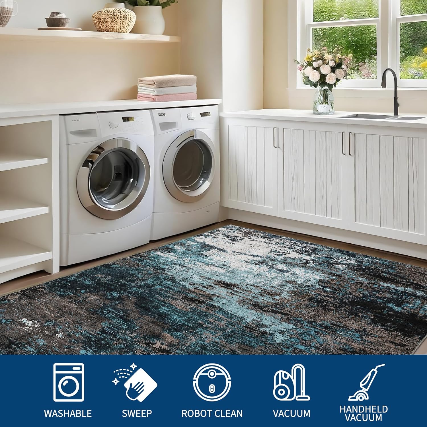Easy to Clean & Maintain: Designed for hassle-free upkeep, this washable rug resists stains and keeps its vibrant look, making it ideal for high-traffic areas like kitchens, bathrooms, and entryways.