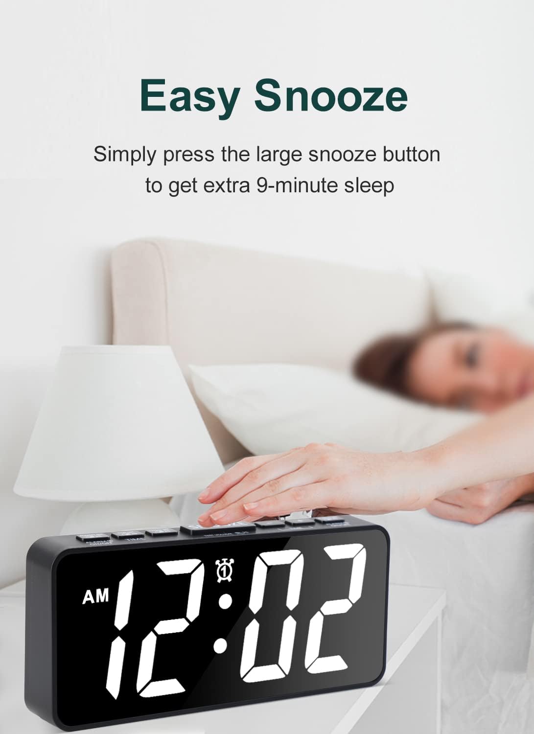 Easy to Use Dual Alarm Clocks – The digital alarm clock has 2 different alarms, convenient for family members with a different schedule. A basic bedside clock with enough practical functions for daily use: adjustable alarm volume, dimmer, USB charging port, SNOOZE function for extra 9 mins sleep.