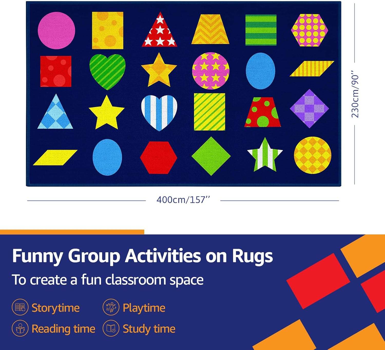 Versatile Design: Ideal for settings such as kindergarten, preschool, middle school, high school, Sunday school, or homeschooling, this large geometric classroom rug for preschool is adaptable to various educational environments. As a rug for classroom use, it fosters a comfortable and conducive learning space