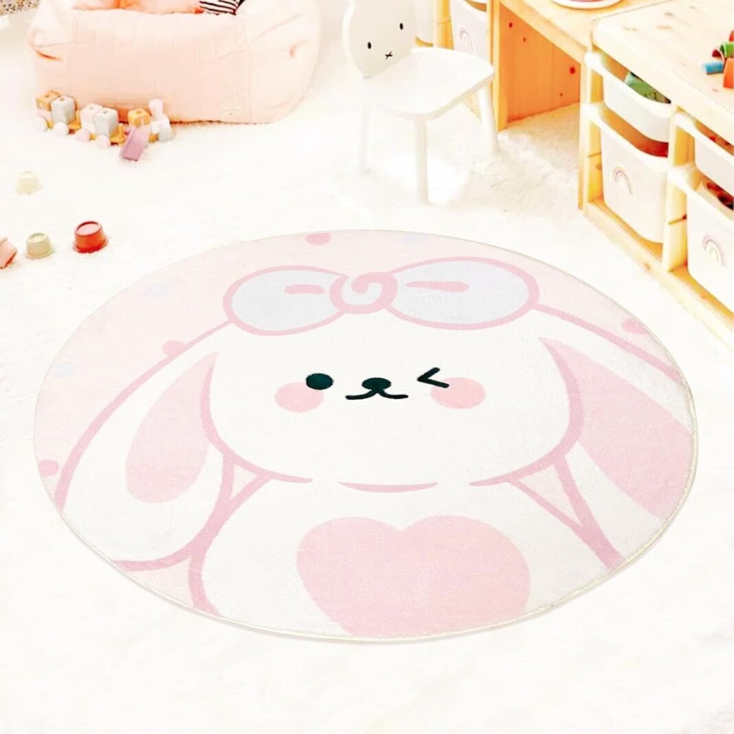 ABREEZE Cartoon Rabbit Round Rugs 63″x63″ Imitation Cashmere Soft and Fluffy Area Rugs for Bedroom, Living Room and Study,Non-slip and Washable