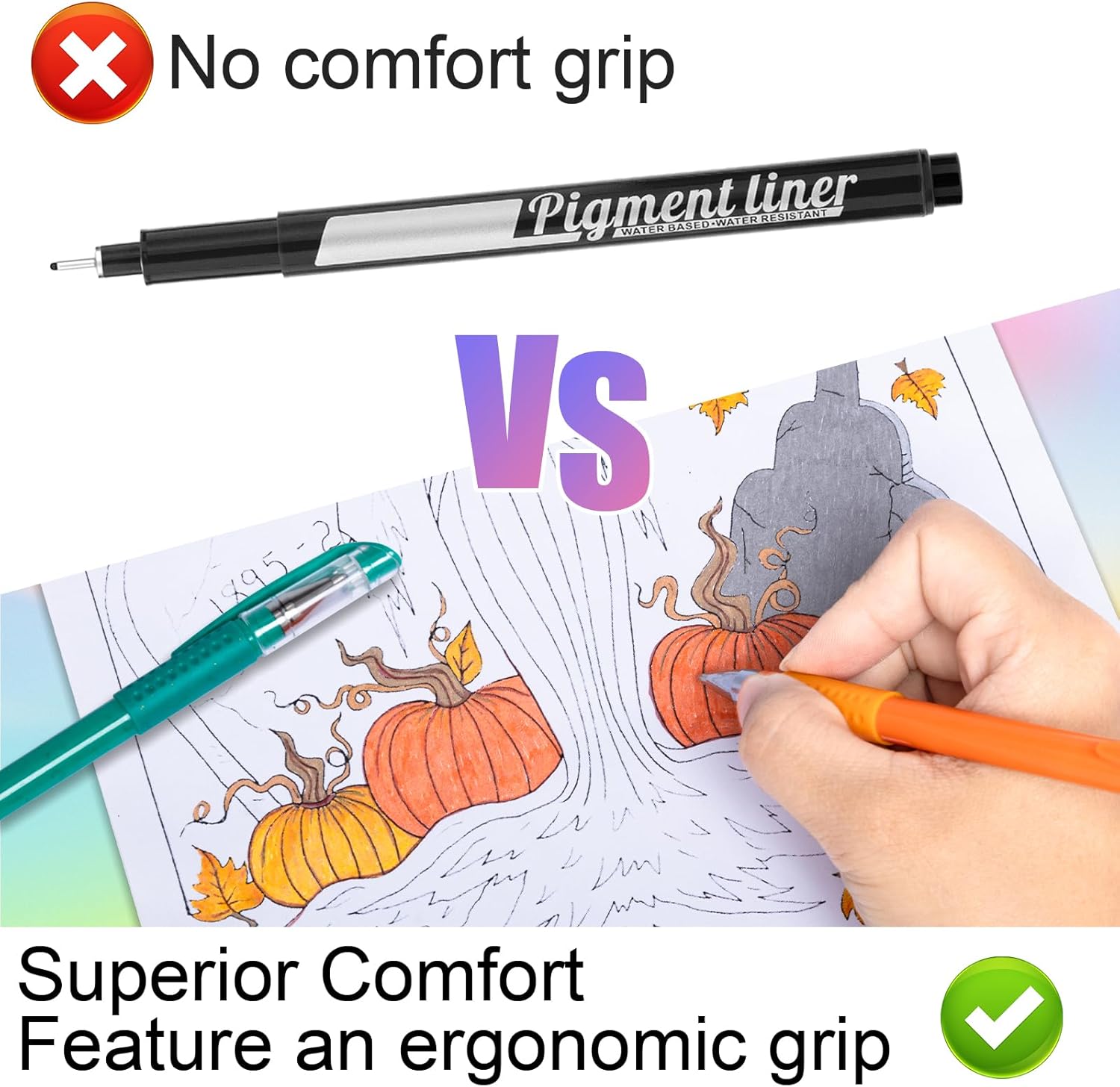 Easy to uses. Each gel pen features an ergonomically comfort grip. You can spend hours coloring without fatigue. Unleash your creativity effortlessly with these masterfully designed pens.