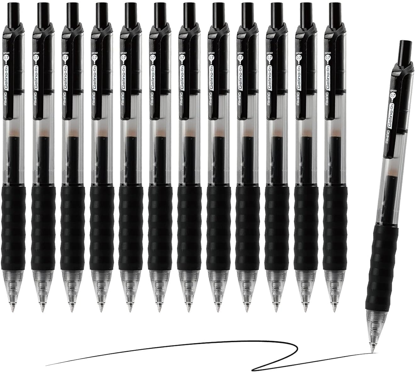 GEL INK PEN- The gel ink pen with black fast drying ink, smooth writing, no smear, no skip, no blob. Vivid and fresh ink delivers a fluent writing experience, and durable for long time. Favorite to left-handed user.