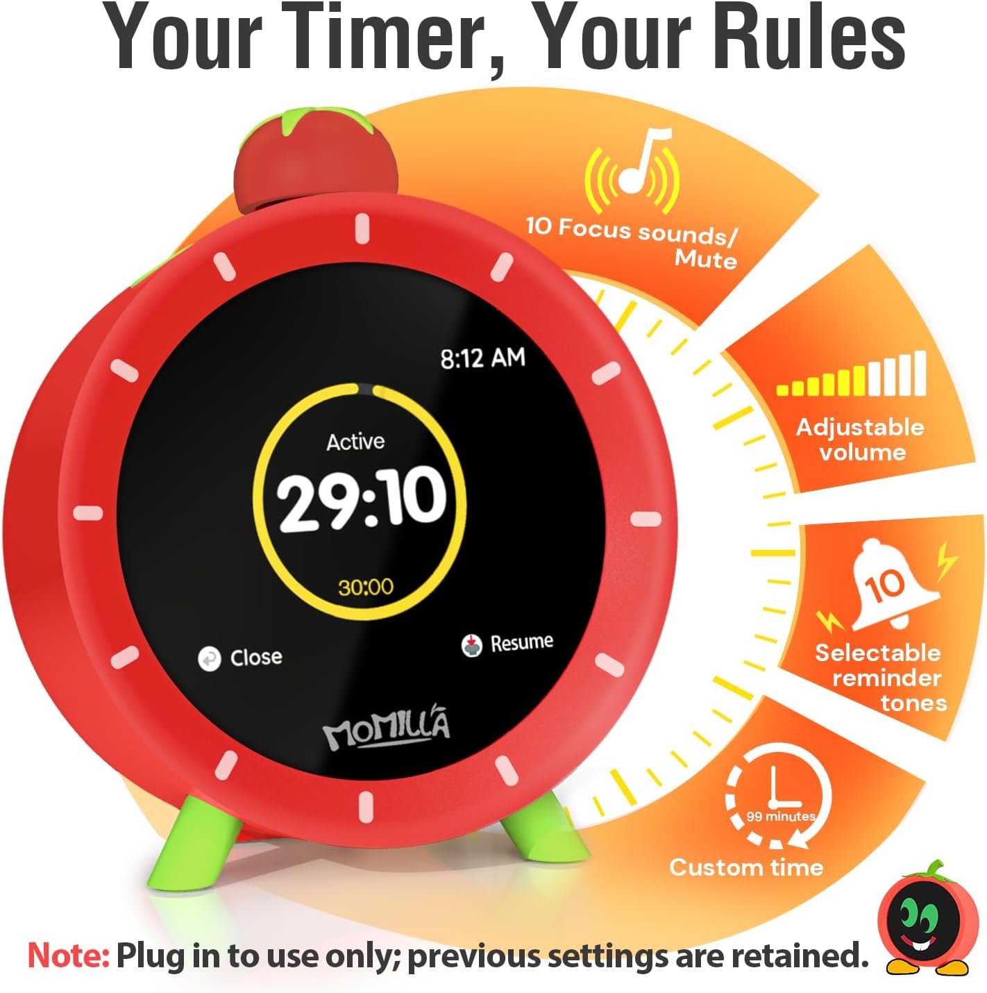 Multi-Scene Use: MOMILLA visual timer is ideal for helping kids stay focused during study sessions, assisting teachers in the classroom, timing cooking in the kitchen, or managing workout intervals. The 2-in-1 versatile visual timer and colorful alarm clock for heavy sleepers meet the needs of the whole family.