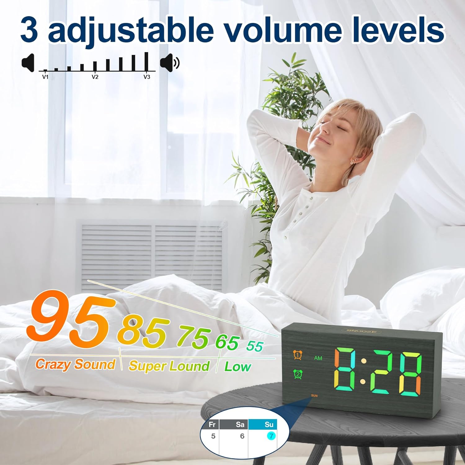 ⏰【Snooze Mode + 3 Adjustable Volume】 – The top of the LED electronic alarm clock is equipped with a snooze button that is easy to use and allows you to easily sleep 5-60 minutes;has a variety of volume options from 55-75-95 dB.You can choose the appropriate volume according to your sleep depth