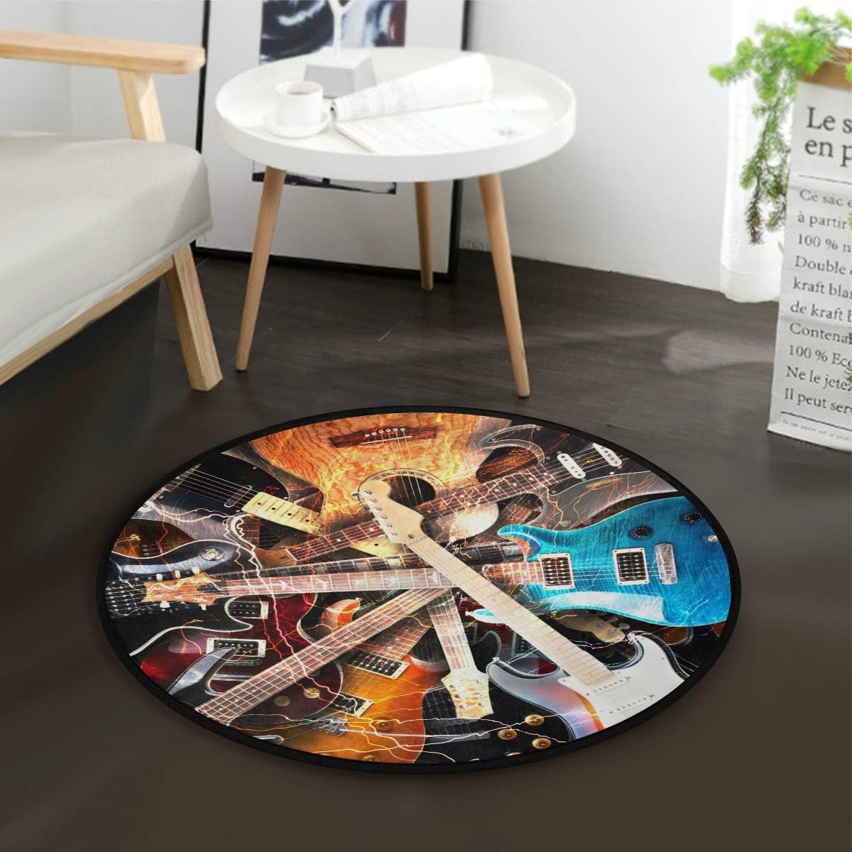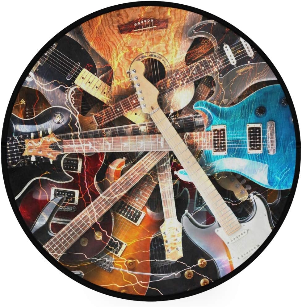 ALAZA Magic Electric Music Guitar Non-Slip Round Area Rug for Bedroom Living Room Study Playing Floor Mat Carpet, 3′ Diameter