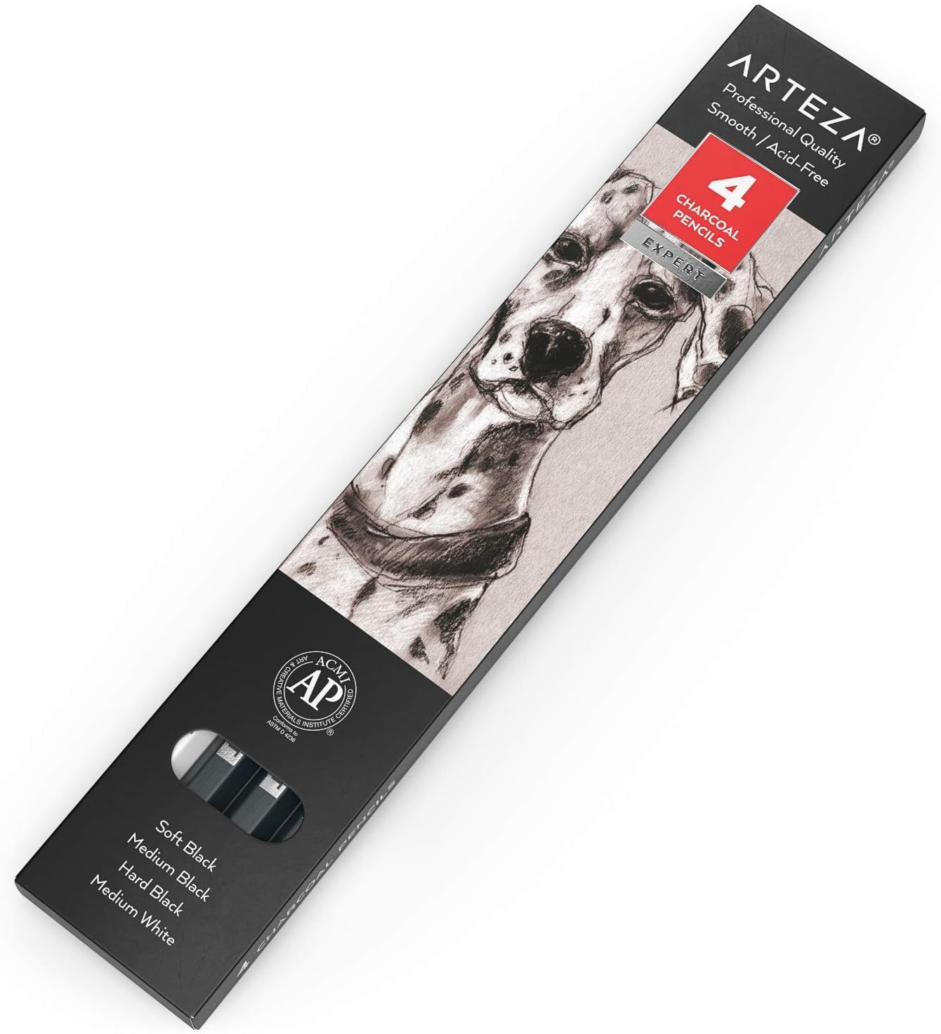 4 Charcoal Pencil Set: This set includes 3 Black Charcoal Pencils in Soft, Medium, and Hard, and 1 White Charcoal Pencil in Medium. These white and black sketching pencils are professional quality for smooth and acid-free sketching, drawing, and shading.