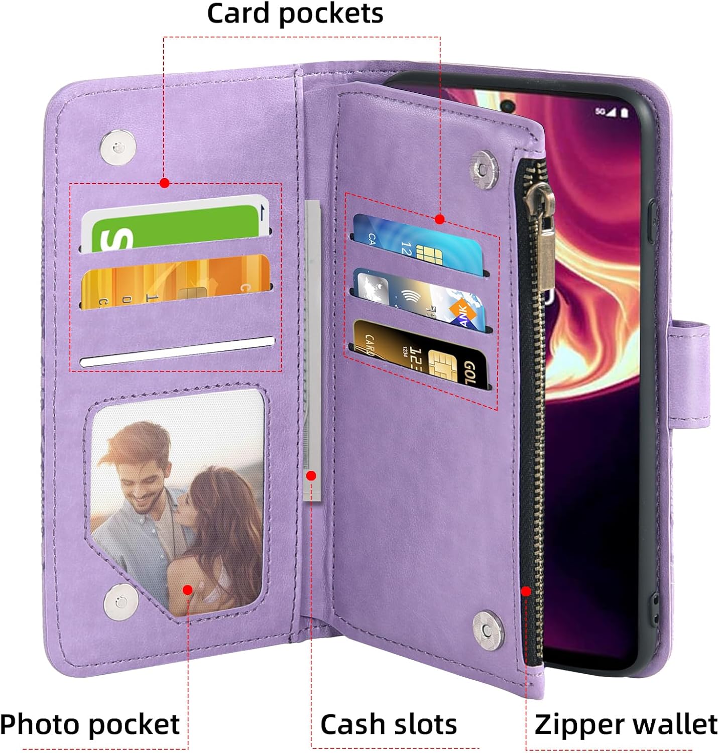 【Wallet】: 6 card slots, 1 cash bags, 1 zipper coin wallet and mobile phone shells, make your life and work more convenient. It can replace bulky wallets, a variety of colors are available for men, women, girls and Teens of all ages.