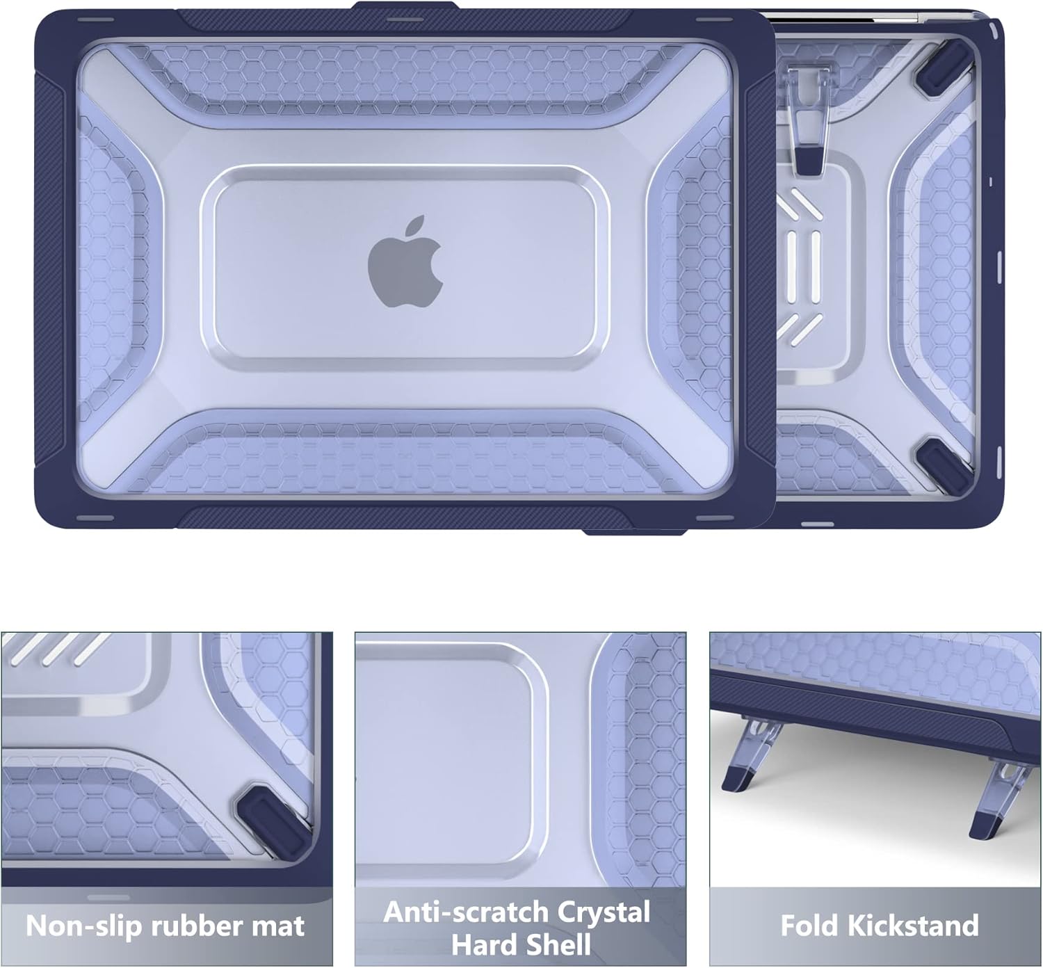 Engineered shock-absorbent beveled ridges Honeycomb design TPU bumper heavy duty hard shell, provides full protection for your laptop against accidental scuffs, drops, and scratches