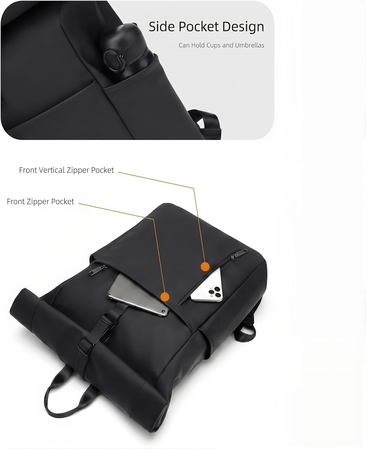 【Modern Minimalist Design】 Featuring a sleek, seamless aesthetic with a premium matte black finish, this roll-top backpack is the perfect blend of style and function for professionals, students, and urban explorers