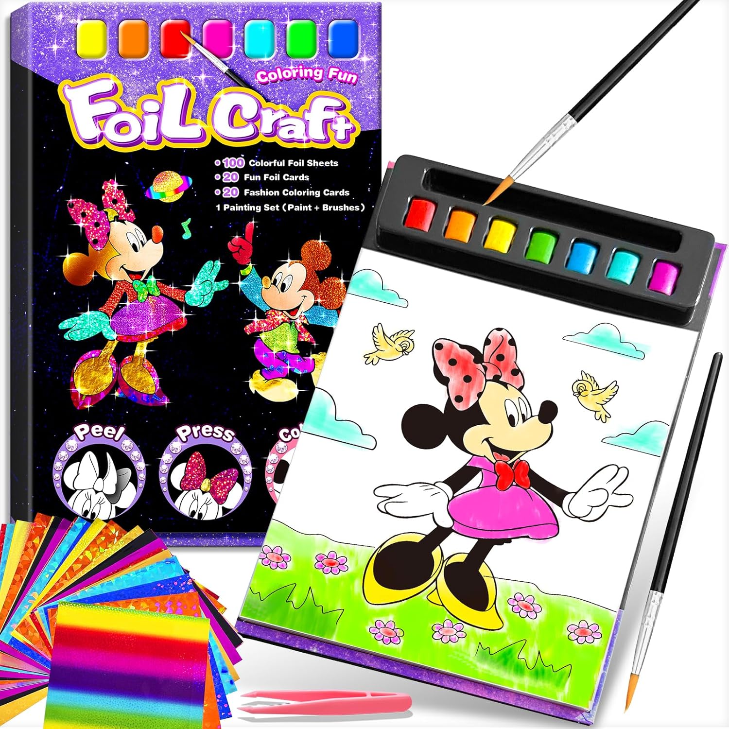 Bgaga Foil Craft Activity for Kids: Fun Foil Arts & Paint with Water Coloring Book 2 in 1, Cute DIY Travel Toys Paint Kit with Paint Block, Idea Birthday Gift for Girls Boys Ages 4 5 6 7 8 9
