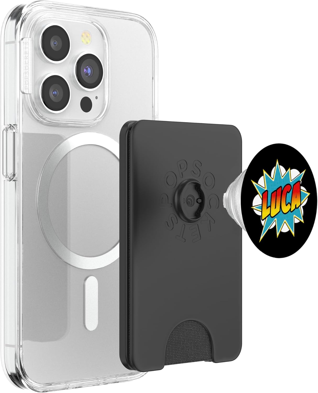 MagSafe compatible wallets magnetically snap on and off your phone with ease, and come with a matching grip. Carries three cards for easy use.