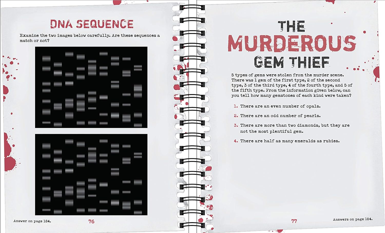Test your intelligence and creative thinking against these murderous puzzles!More than 130 varied puzzles, themed around murder and crime to test your verbal, logic, and memory skills.Includes cryptograms themed around famous crimes, anagrams, word ladders, word searches about historic cases, and more.Use logic to find the bottle with the poison.Use observational skills to see if two DNA sequences are a match or different.Read true crime accounts and test your memory for detail.A complete answer key is found at the back of the book.Spiral bound, 192 pages