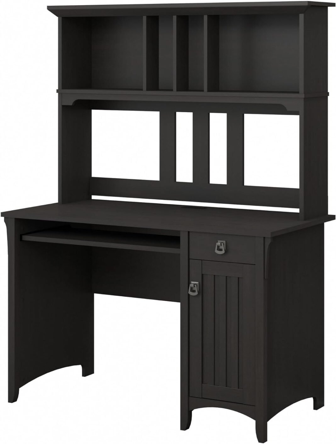 Bush Furniture Salinas Computer Hutch | Study Table with Drawers, Cabinets & Pullout Keyboard/Laptop Tray | Modern Home Office Work Desk with Storage, 48W, Vintage Black