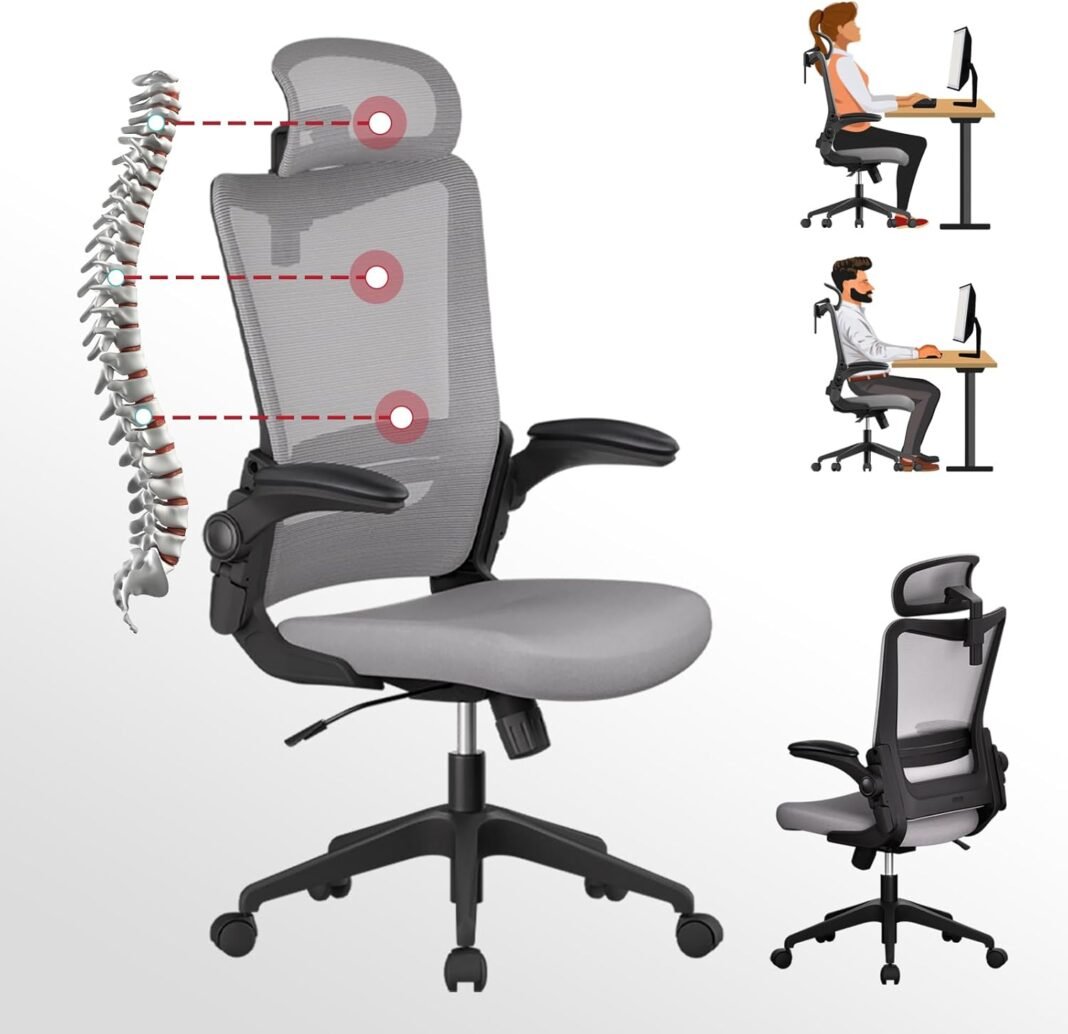 4D ADJUSTABLE FLIP-UP ARMREST FOR SPACE SAVING & COMFY – The adjustable armrest of this chair can easily meet your different needs for chair use. Armrests that can be turned up 90 degrees not only help you to easily store the chair when it is not suitable, but also help you to have more space during use to enjoy a more comfortable feeling of sitting. You can adjust the armrest to any position in a 90-degree space for greater comfort. You can also easily adjust the armrest of the chair up and down on different occasions, also matching various tables. Whether in the office or home office or meeting room, the design of adjustable headrest provides you with first-class comfort and convenience.