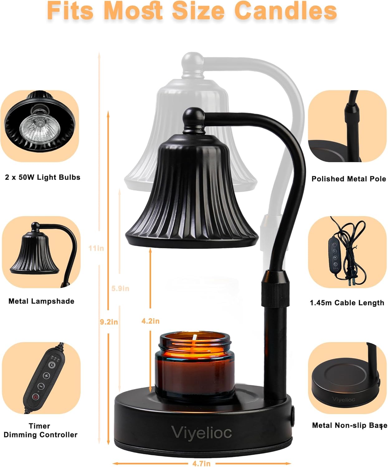 Superior Craftsmanship & Height Adjustment: Candle warmer lamp black features a double-layer thickened iron lampshade with an 80% heat insulation rate. The superior electroplating process ensures long-lasting durability. The electric candle warmer can easily accommodate various large-sized aromatherapy candles on the market