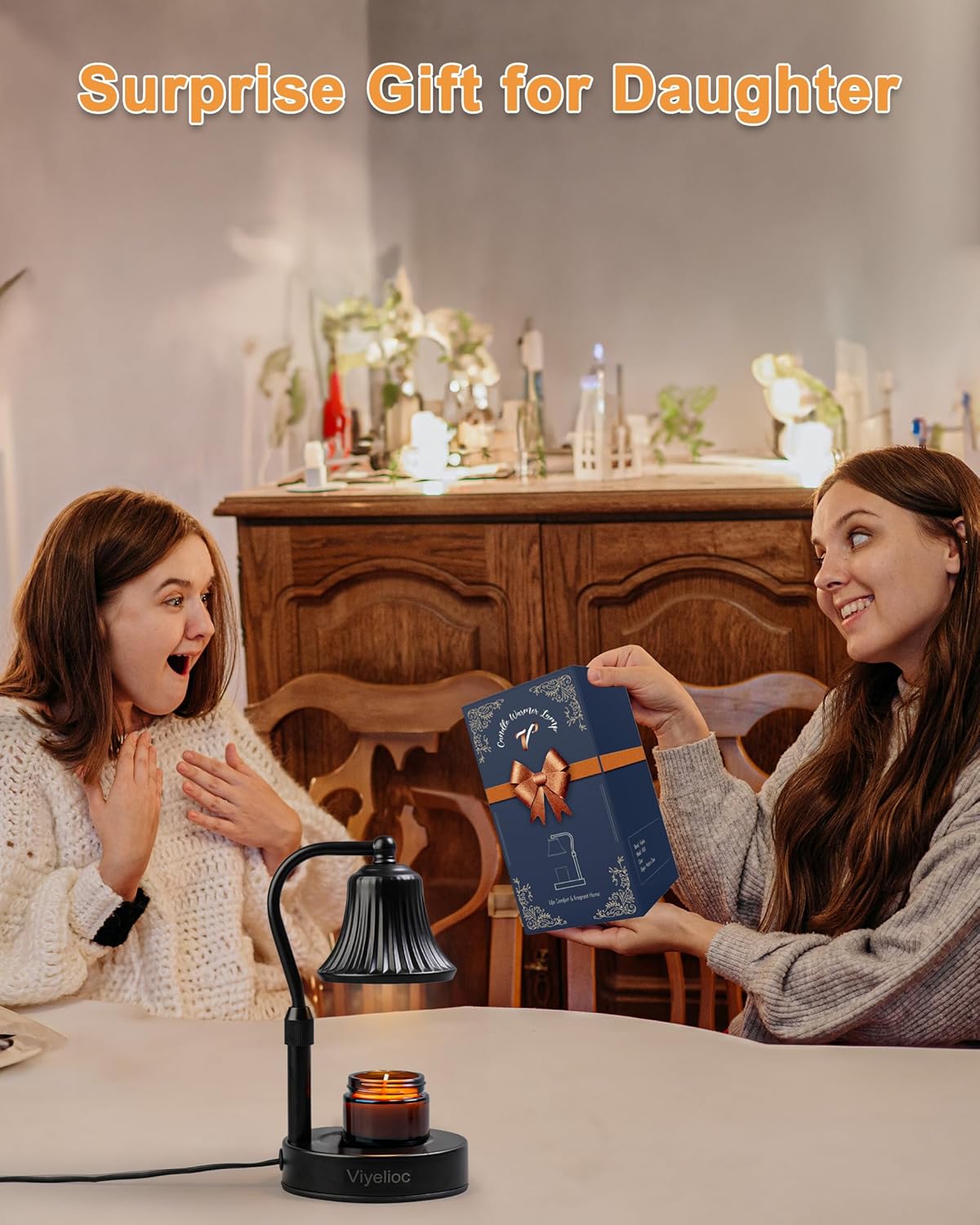 Unique Gifts for Women: Choosing a Viyelioc candle warmer lamp with timer as an ideal gift, offering the benefits of an air purifier, coffee warmer, delicate night light, and stylish home decor all in one elegant package. A dimmable electric candle warmer lamp intensifies the scent of aromatherapy candles