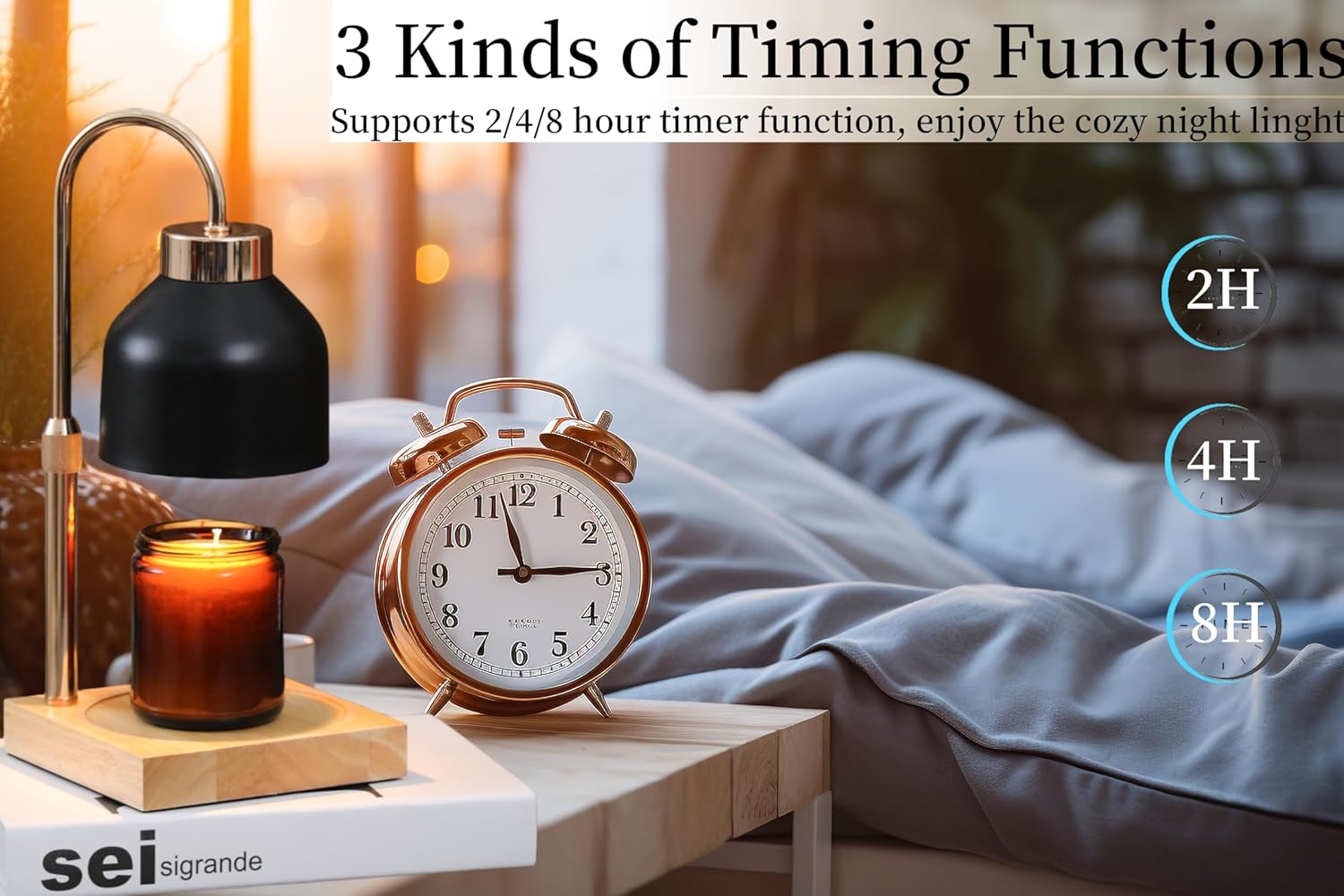 The candle heater lamp-10%-30%-70%-100% dimmable brightness control and 2/4/8 hours timer,No-Flame ,No-Soot,No-Smoke,It’s a very safe choice.