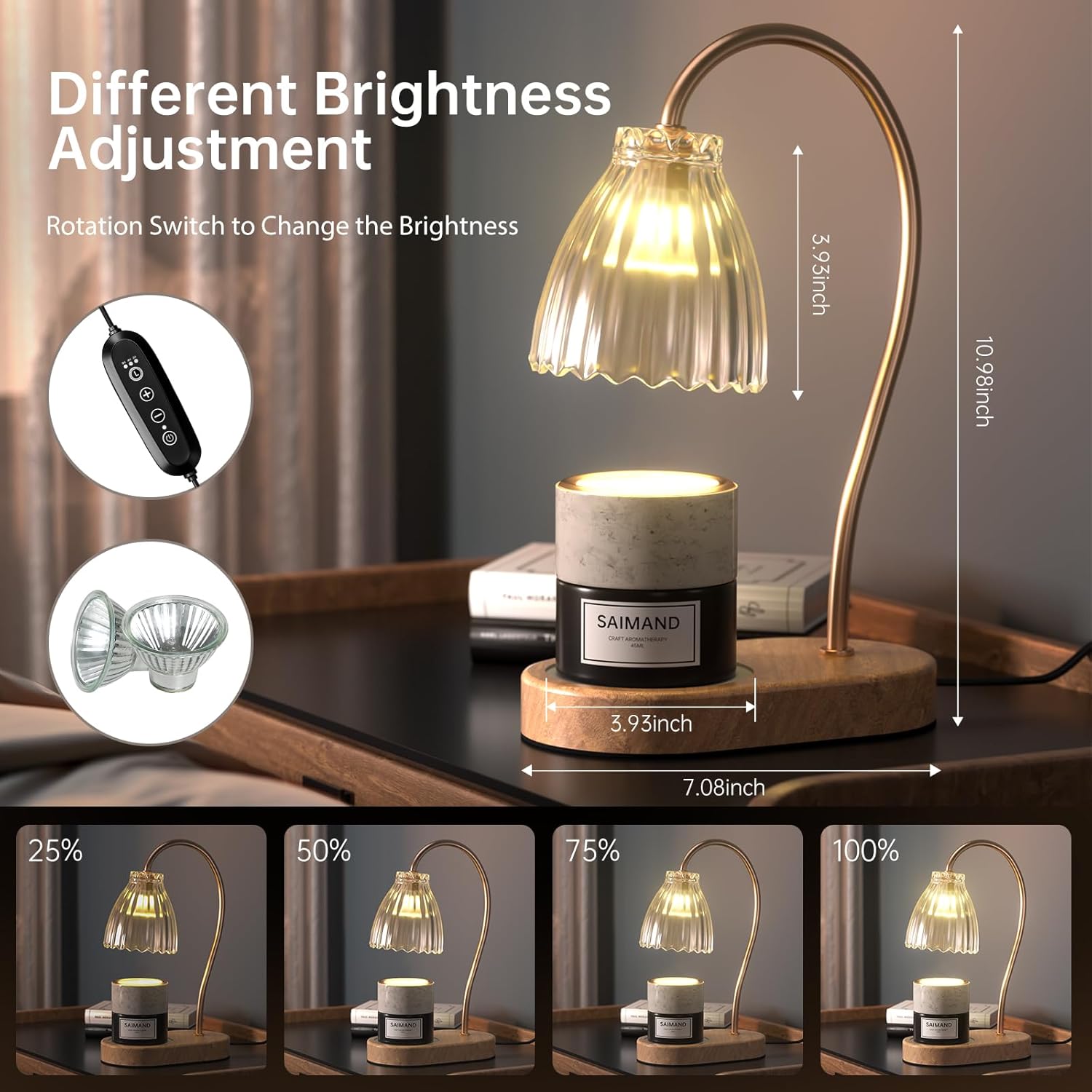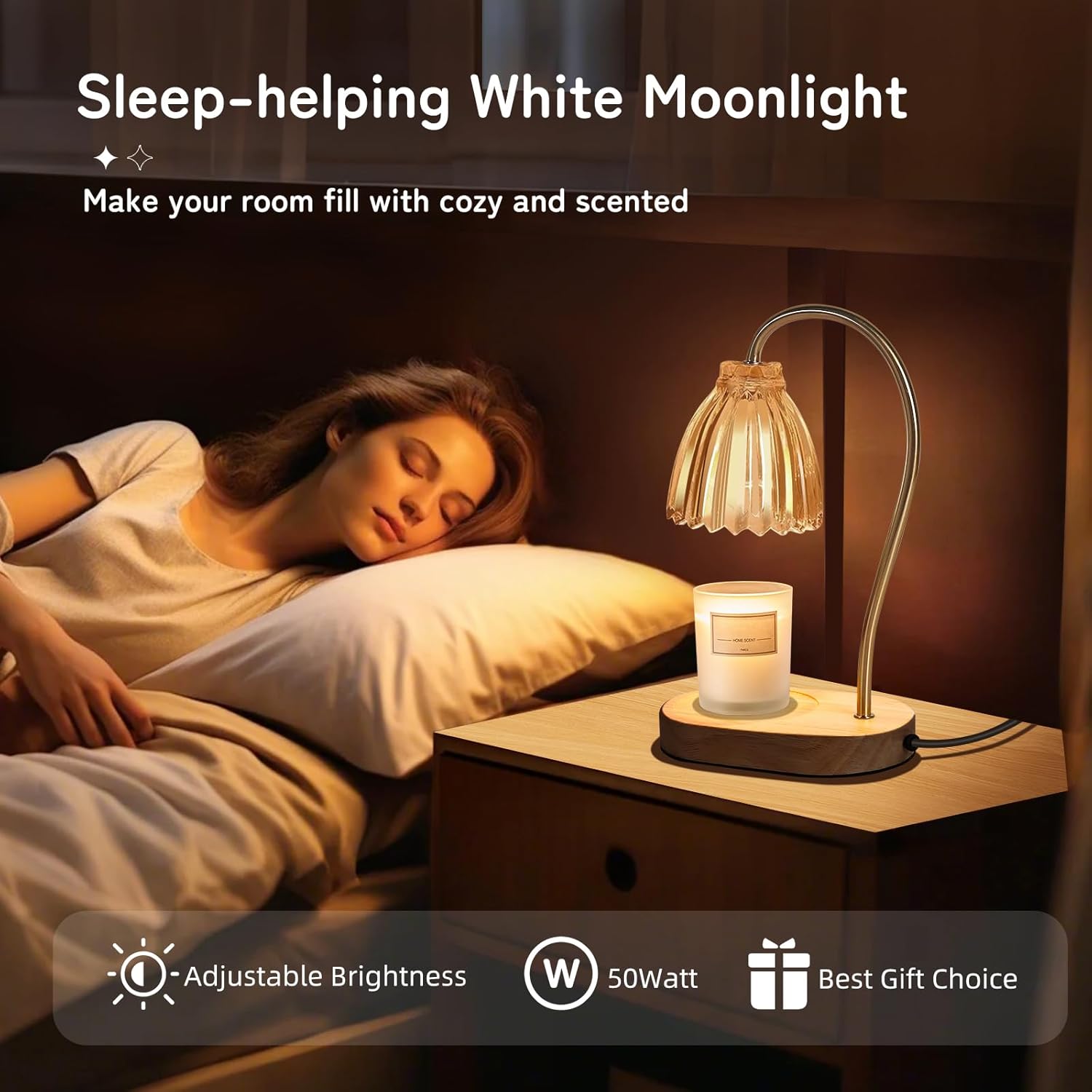 【Timing& 3 Levels of Brightness Adjustmen】 Our electric candle warmer made by 50W GU10 halogen bulb, ensures efficient fragrance burst by melting candles and wax from the top. Need a quick burst of fragrance? You could use harness control with our dimmable feature, allowing you to tailor the melting speed to your liking. Opt for brighter settings for a swift release. For a more gradual diffusion, dim it down. And for added convenience, indulge in the 2/4/8-hour shut-off function provided by our timer-enabled candle warmer lamp.