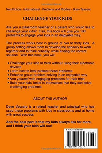 This is the second book in the CHALLENGE YOUR KIDS series of problems, brain teasers and riddles for kids. The purpose of each book is to get kids to use their imagination to think through and to solve problems together in an enjoyable way.