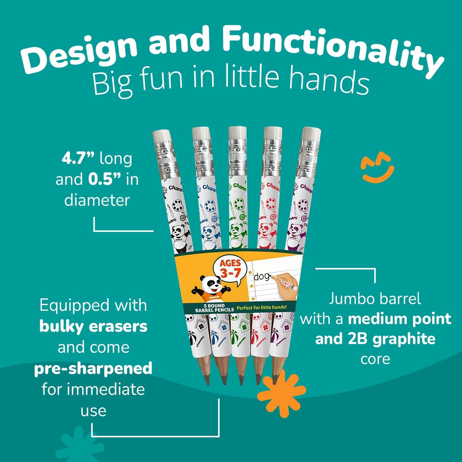 Jumbo Barrel for Better Grip: The medium point and 2B graphite core of our preschool pencils creates thick, dark lines; Each jumbo pencil is 4.7” long and 0.5” in diameter and weighs 5 oz to help your child gain better control of their writing hand