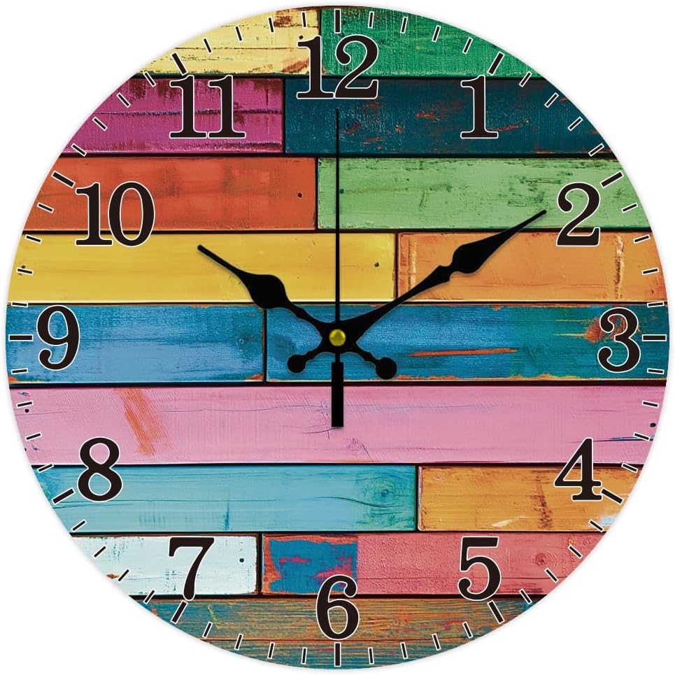 CHGCRAFT 12inch Rainbow Board Pattern Wall Clock Battery Operated Silent Non Ticking Round Decorative Clock for Office Home Living Room Bedroom Bathroom Kitchen Decor