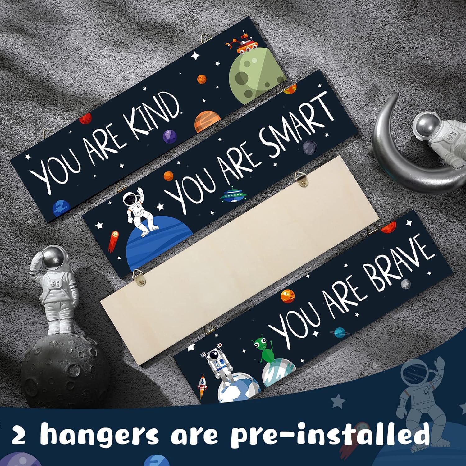 Long Applying Time: these space motivational wall decors are formed by quality wood with clear print with metal hooks, solid color is not easy to fade, certain thickness is not easy to break or deform, bright in colors, clear in patterns, which can be applied for a long term; Nails on the wall can better fix the hooks on the product