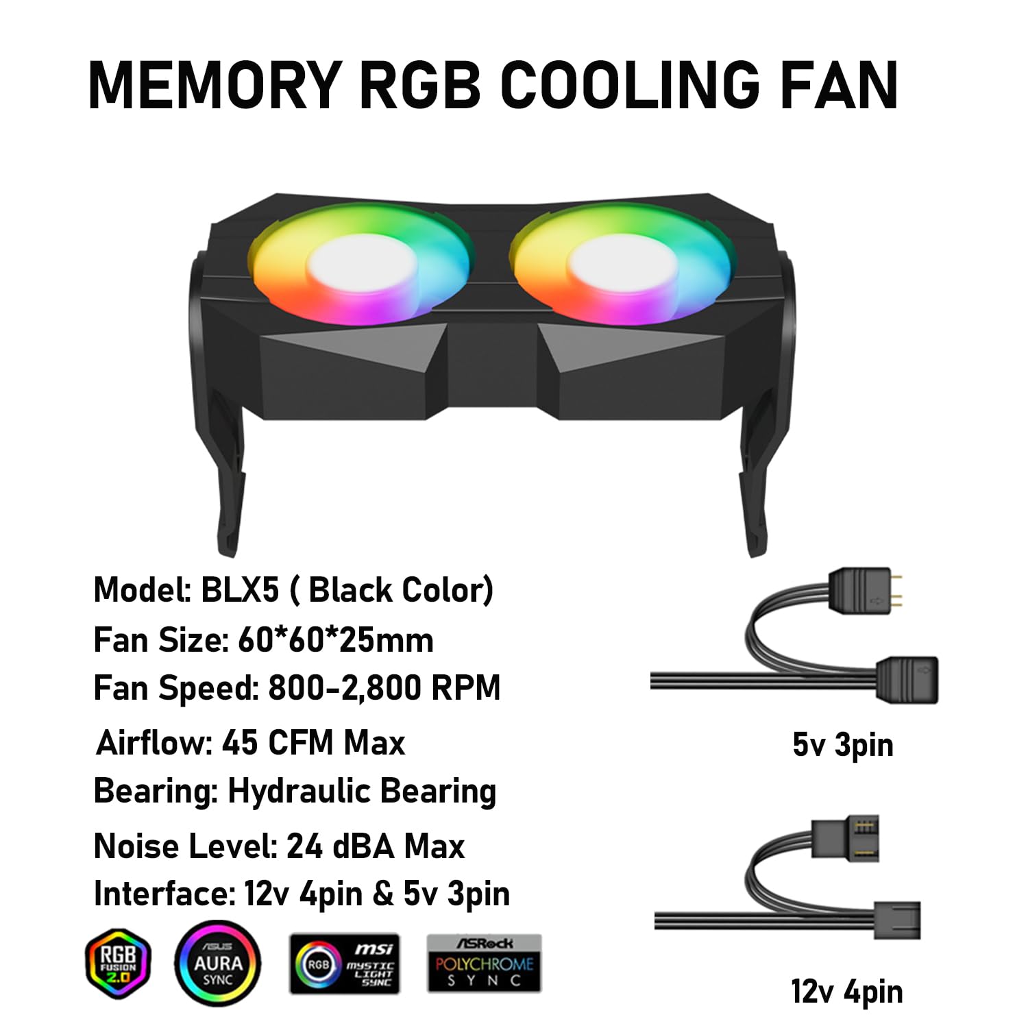 BLX5 argb ram radiator memory cooling fan made for computer gaming, support for DDR/DDR2/DDR3/DDR5/DDR5, good choice for ram cooling solution.