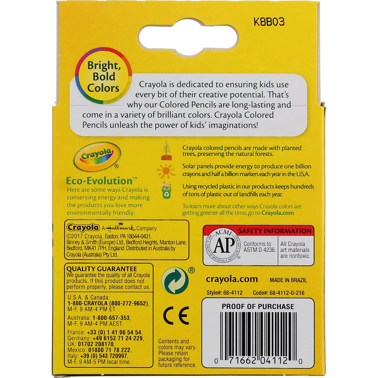 Crayola Short Colored Pencils in 12 bright, intense colors. Thick, strong leads for smooth color lay down. Pencils made from reforested wood. Contains no tropical rain forest wood and are non-toxic. Conforms to ASTM D4236. 2 Packs for this price.