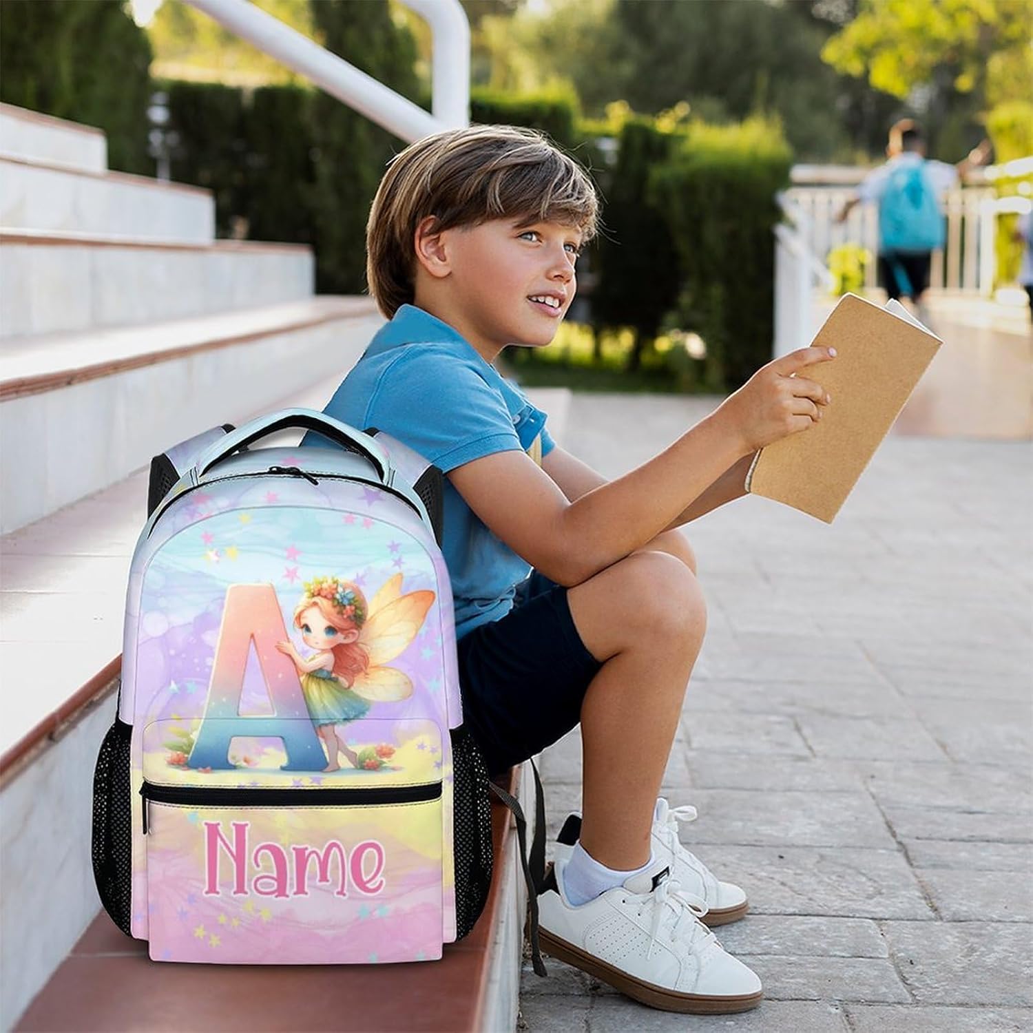 Custom Design: Our talented designer has created eye-catching patterns, adding a one-of-a-kind addition to your backpack. Looking for a personalized present? Customize your backpack with your name or text, making it a thoughtful present for yourself or someone special. Kids fairy backpack and lunch box, pencil case all can customize a name/text, we will make a personalized name schoolbag for you