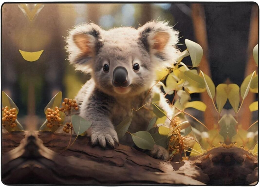 Every detail is crafted with care – our Cute Koala Plant printed decorative rugs are made of high-spec polyester flannel, with fine and compact pile that resists pilling and fading. The memory foam middle layer dynamically adapts to foot pressure, relieving fatigue from standing or walking for long periods of time. The non-slip bottom design is designed to protect the safety of your family, especially for families with elderly people and children. It is easy to clean, can be washed by water or machine, and has excellent durability. The exquisite cutting and stitching craftsmanship ensures that the edges are flat and burr-free, making it easy to integrate into the bathroom, bedroom or office.