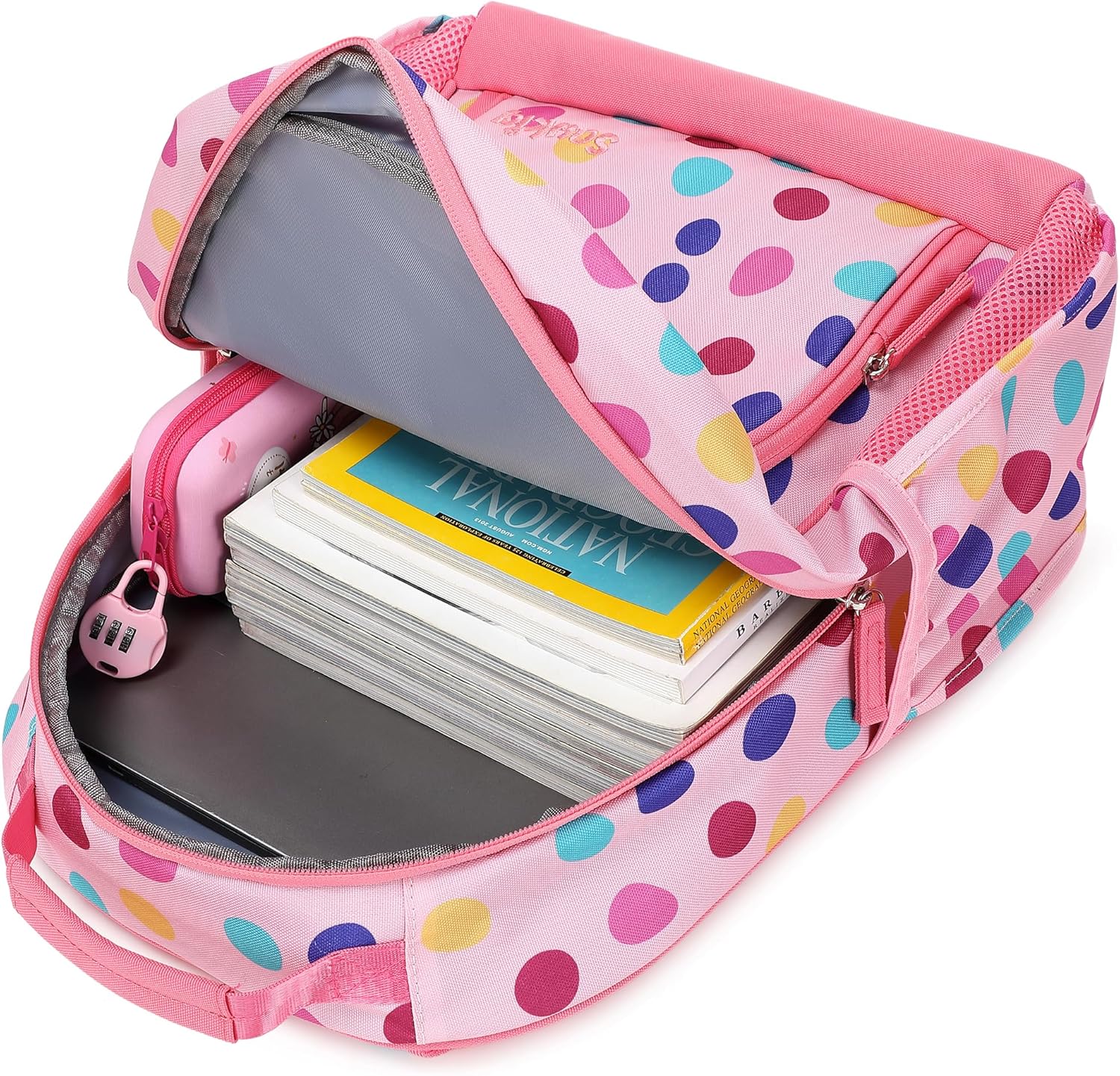 Cute Polka Dot Backpack for Elementary School Girls Middle Bookbag for Kids 8-12(Colorful Polka Dot