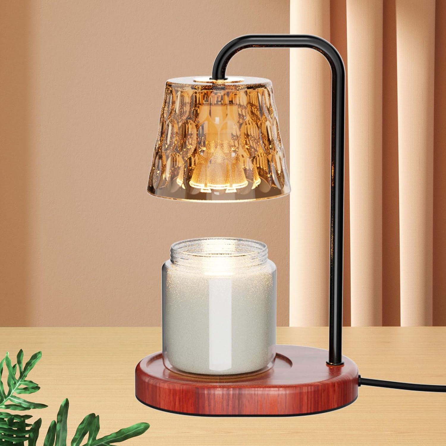 [Excellent Work Functional ]: Our electric candle warmer lamp utilizes 35-watt halogen warming bulbs (included), gently melting the candle from the top down to bottom. With no open flame, no need concerns of flame, smoke, soot, and pollution, the candle warmer is good to people and environment. Moreover, no-slip pads have been added under the wooden base for stability, making you feel safe when using this candle lamp warmer.