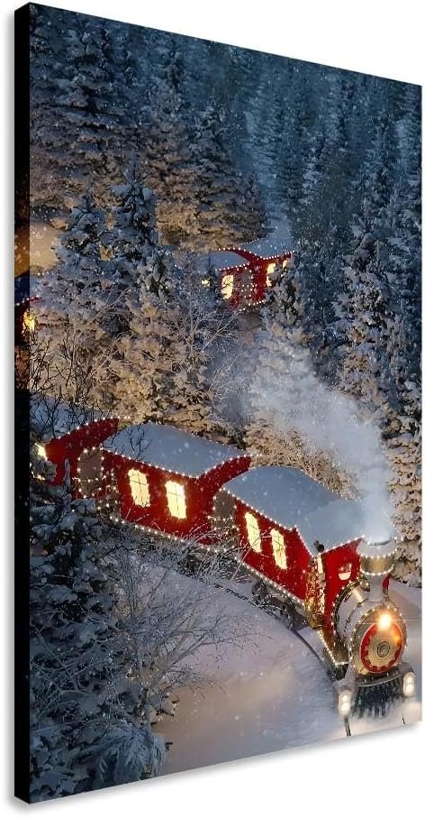 Diycoend Wall Art-Wooden Framed Canvas Decorative Painting,Snowy Christmas Train Canvas Print Wall Great for Weddings,Graduations,Modern Home Gift LivingRoom Bedroom Bathroom Kitchen StudyRoom 28″x42″