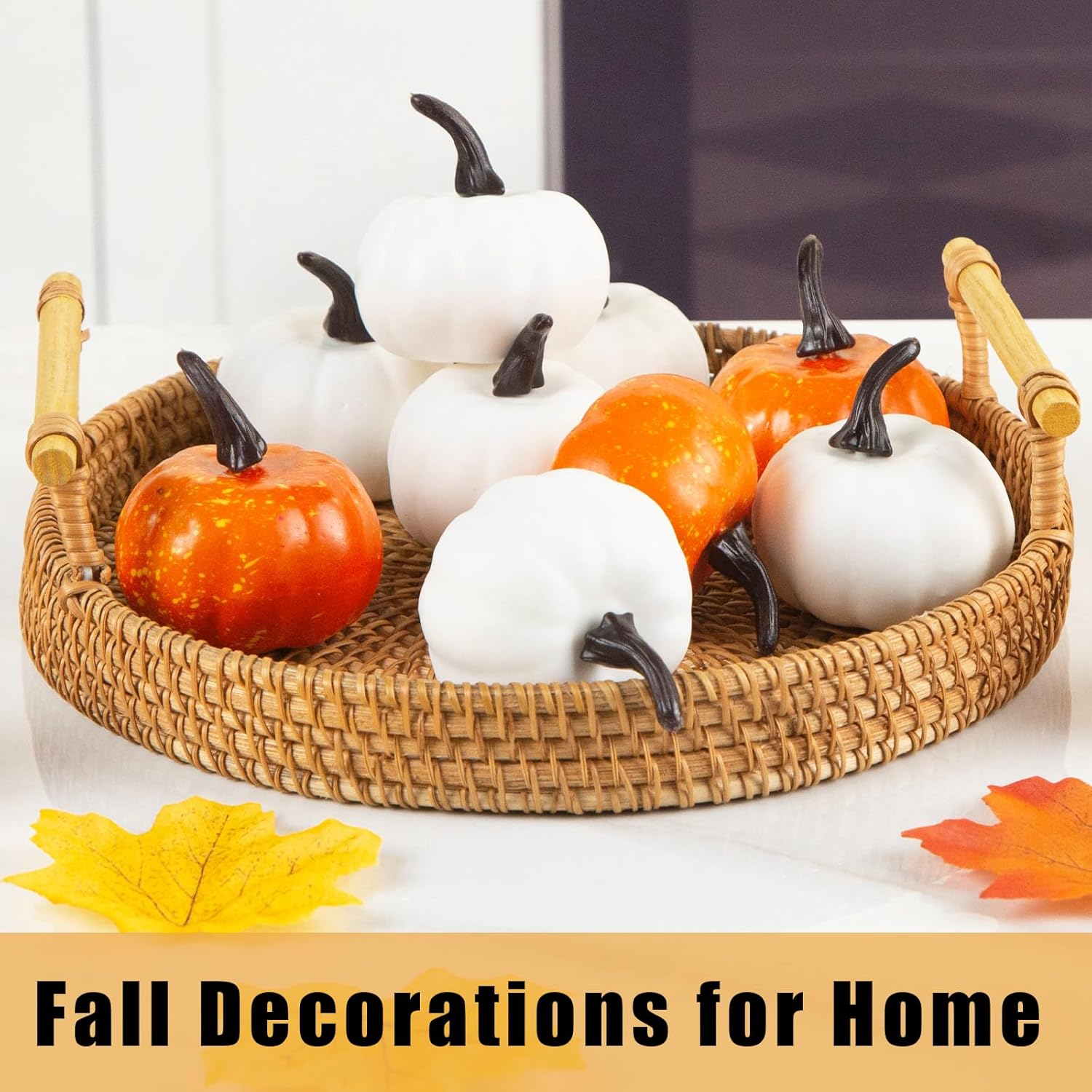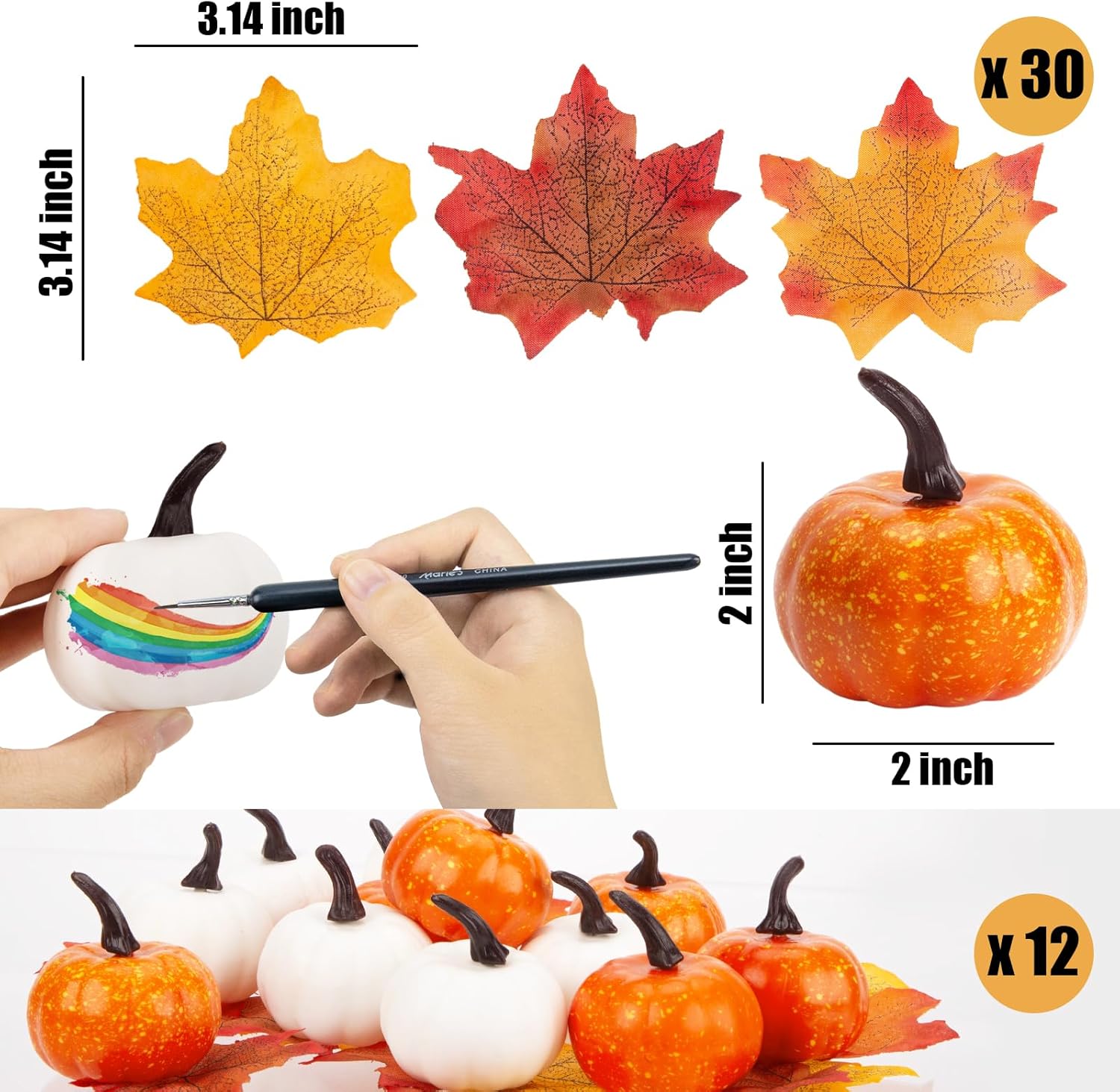 PREMIUM QUALITY – Our mini pumpkins are all made of high-grade foam, non-toxic and odorless, with realistic stripes and speckles, lifelike and real looking; The maple leaves are made of silk, durable and high-strength, no color fading or shedding concerns
