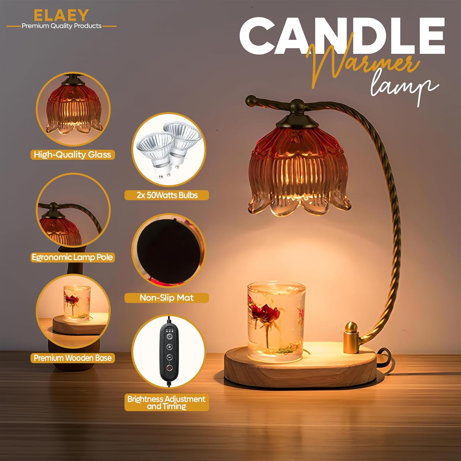 ✅[CANDLE WARMER WITH TIMER, DIMMING FUNCTION]: Our light candle warmer lamp timer features three timing options which can be set to automatically shut off after (2H/4H/8H) hours. Which allows to enjoy a safe and reliable use with our lamp.