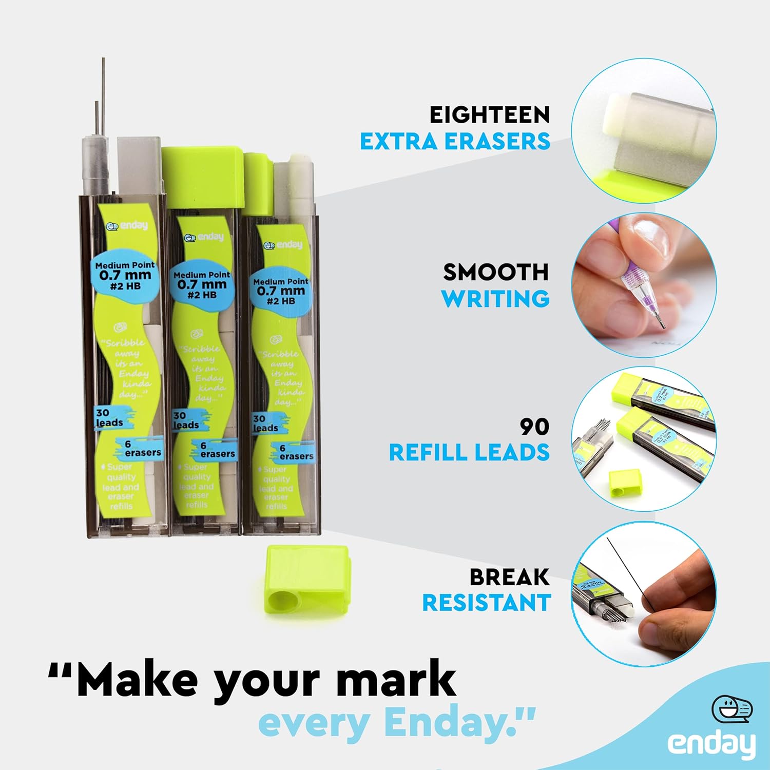 Our 0.5 mm mechanical lead and erasers pencil refills are split in the most convenient way. They are split into 3 separate tubes so they can be used at home, school and office and be kept there for easy accessibility. This lead is reliable and resilient it does not break easily and comes with many pieces. The erasers are soft and erases pristinely without ruining the paper. Their durable and solid make up make them a great option.